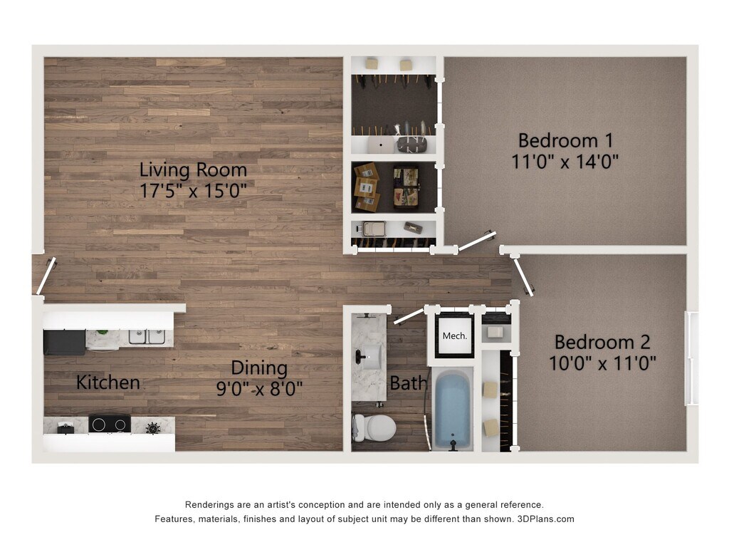 2 Dormitorios, 1 Baño, 900 pies²Disponible AhoraGalería del Modelo