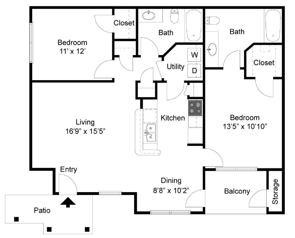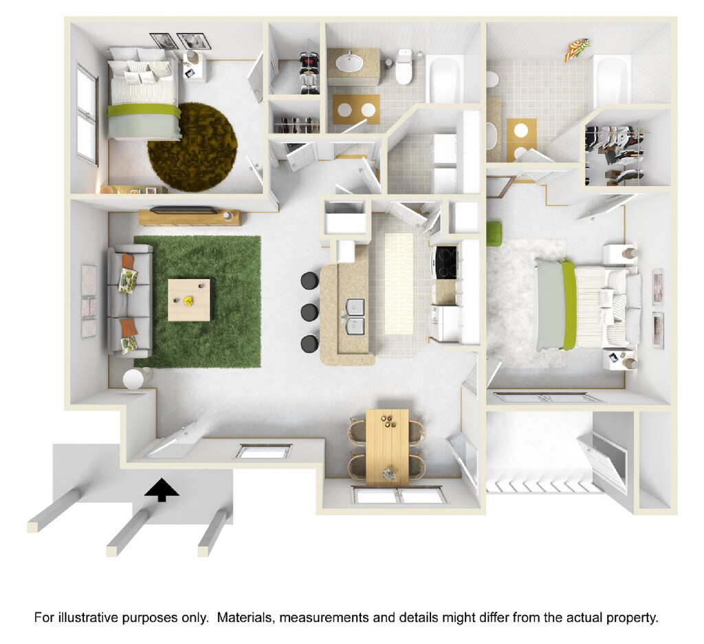 Modelo de apartamento: 2 Bed, 2 Bath2 Dormitorios, 2 Baños, 1020 sq ftNo Disponible![]()