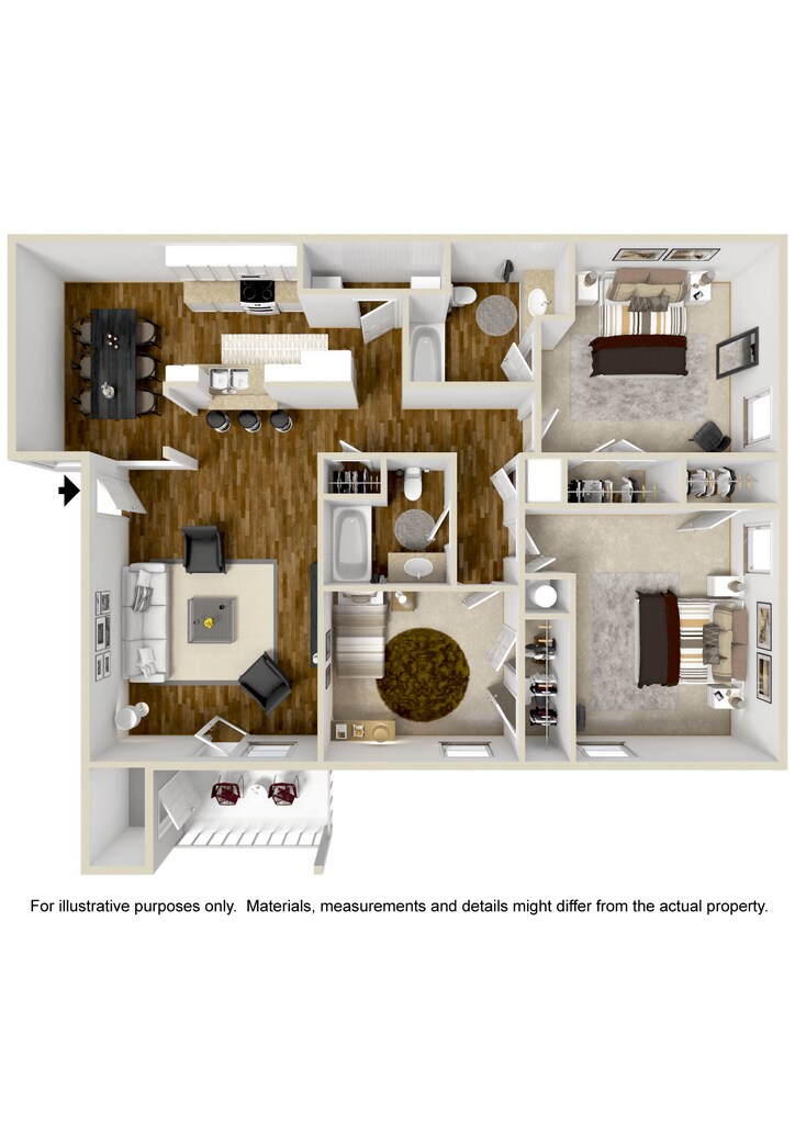 2 Dormitorios, 2 Baños, 1196 pies²Disponible AhoraEl más grandeEsta opción tiene las unidades más grandes para este modeloGalería del Modelo