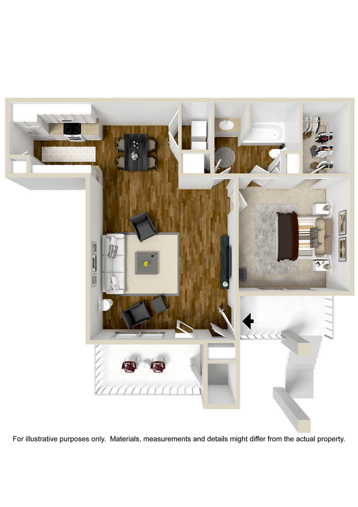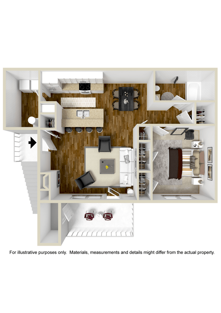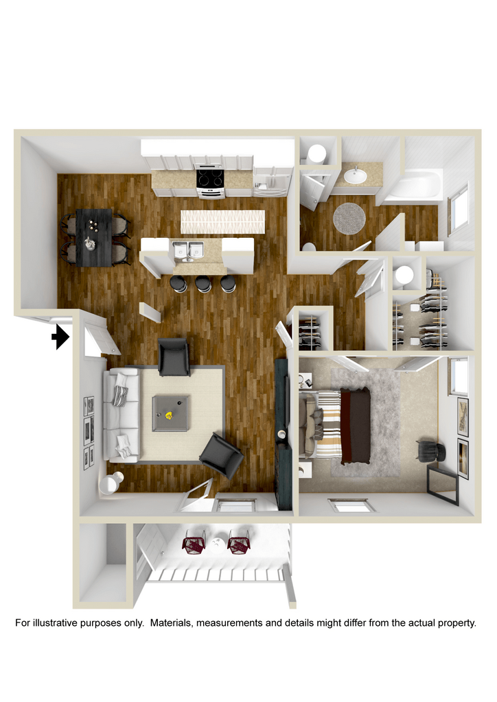Modelo de apartamento: The ChateauLlame para Precios1 Dormitorio, 1 Baño, 870 sq ftNo Disponible![]()