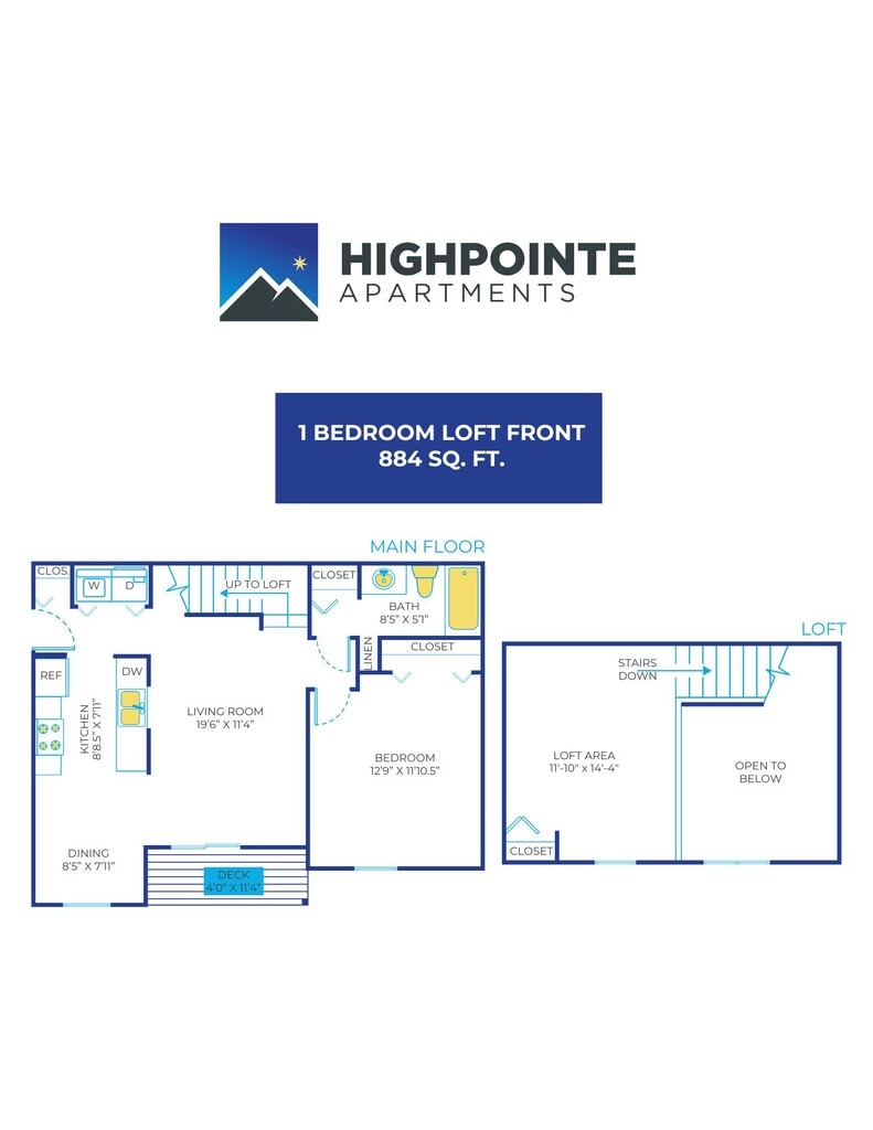 Modelo de apartamento: 1 Bed, 1 Bath Loft - 884 sq ft$1,2401 Dormitorio, 1 Baño, 884 sq ftNo Disponible1 Bed, 1 Bath Loft - 884 sq ft - Plano 1 1 Bed, 1 Bath Loft - 886 sq ft