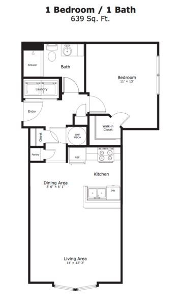 1 Dormitorio, 1.5 Baños, 796 pies²El más grandeEsta opción tiene las unidades más grandes para este modeloGalería del Modelo