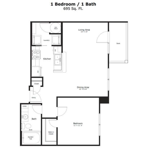 1 Dormitorio, 1 Baño, 695 pies²Disponible Nov 3Galería del Modelo