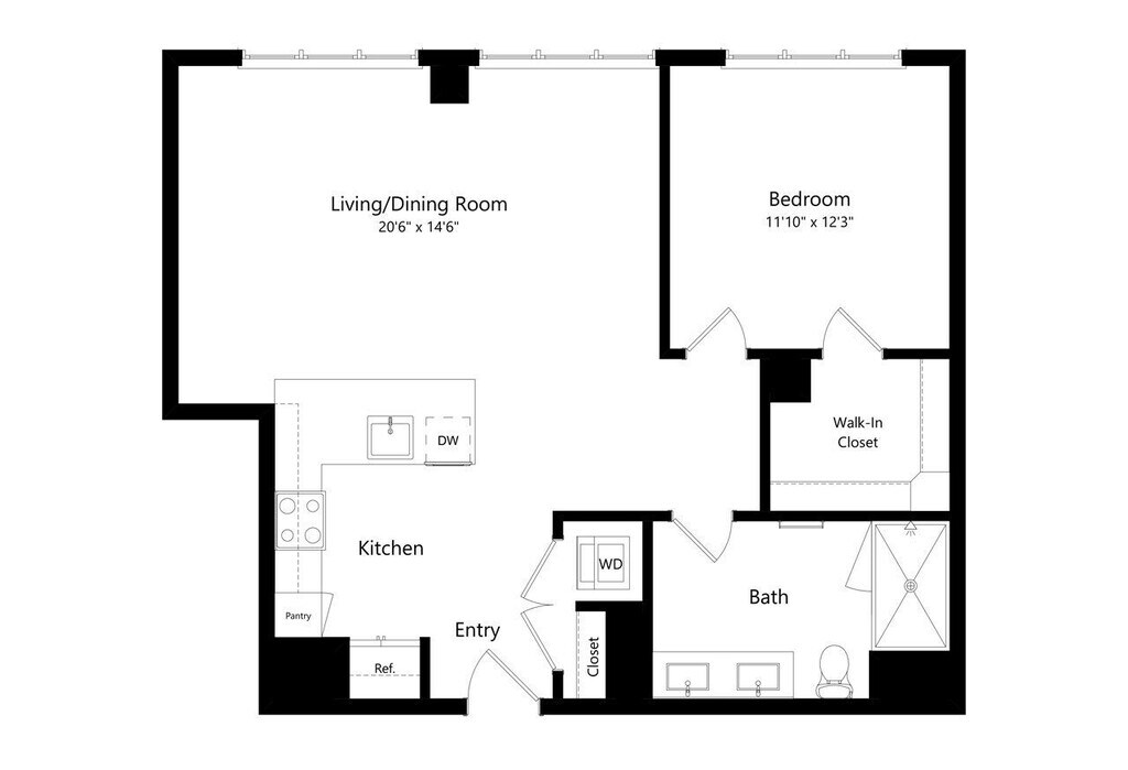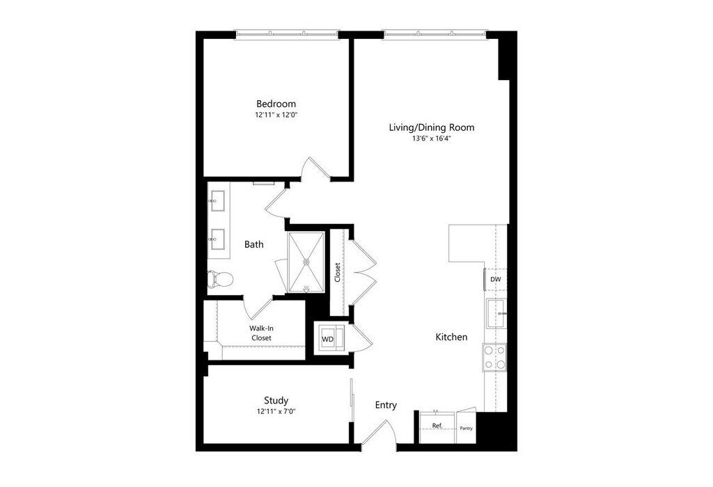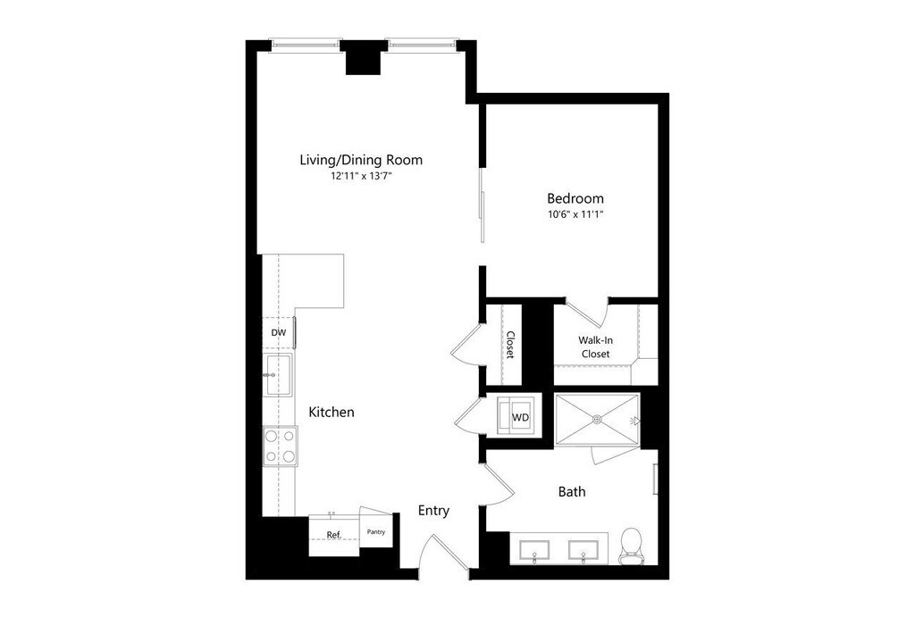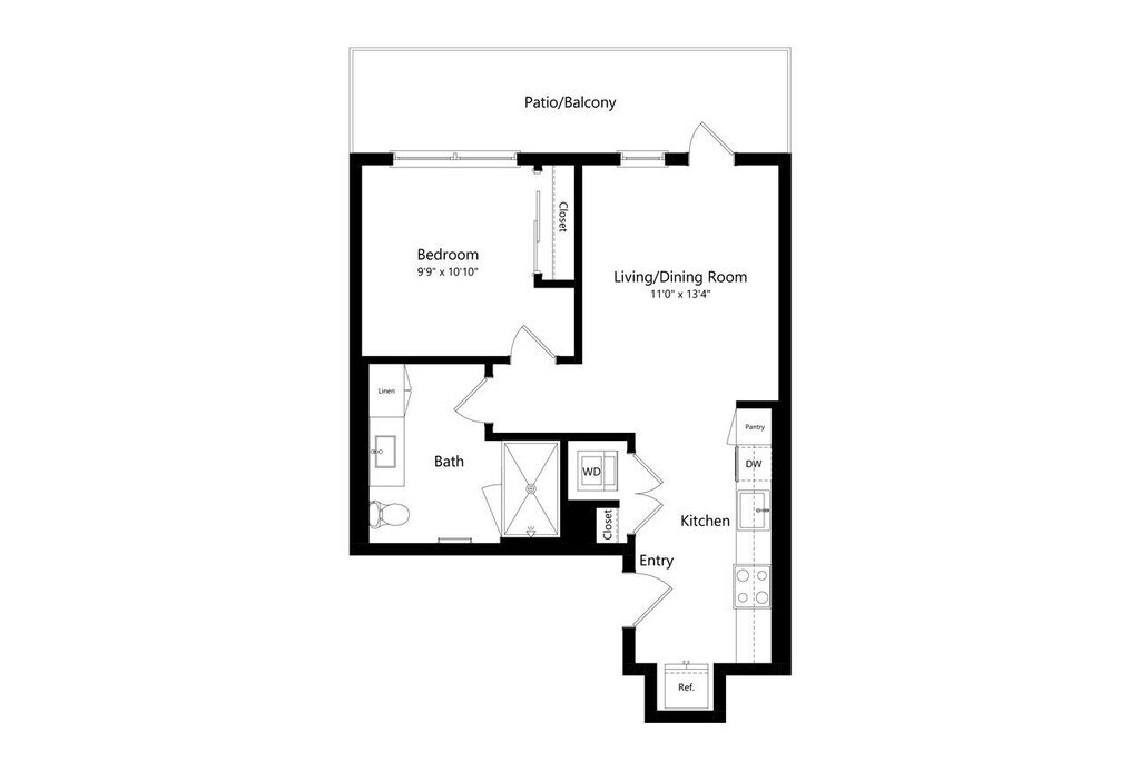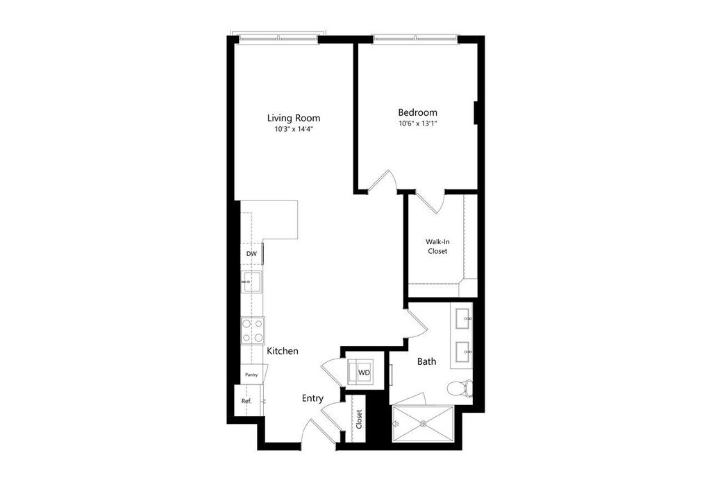 Estudio, 1 Baño, 614 pies²Galería del Modelo