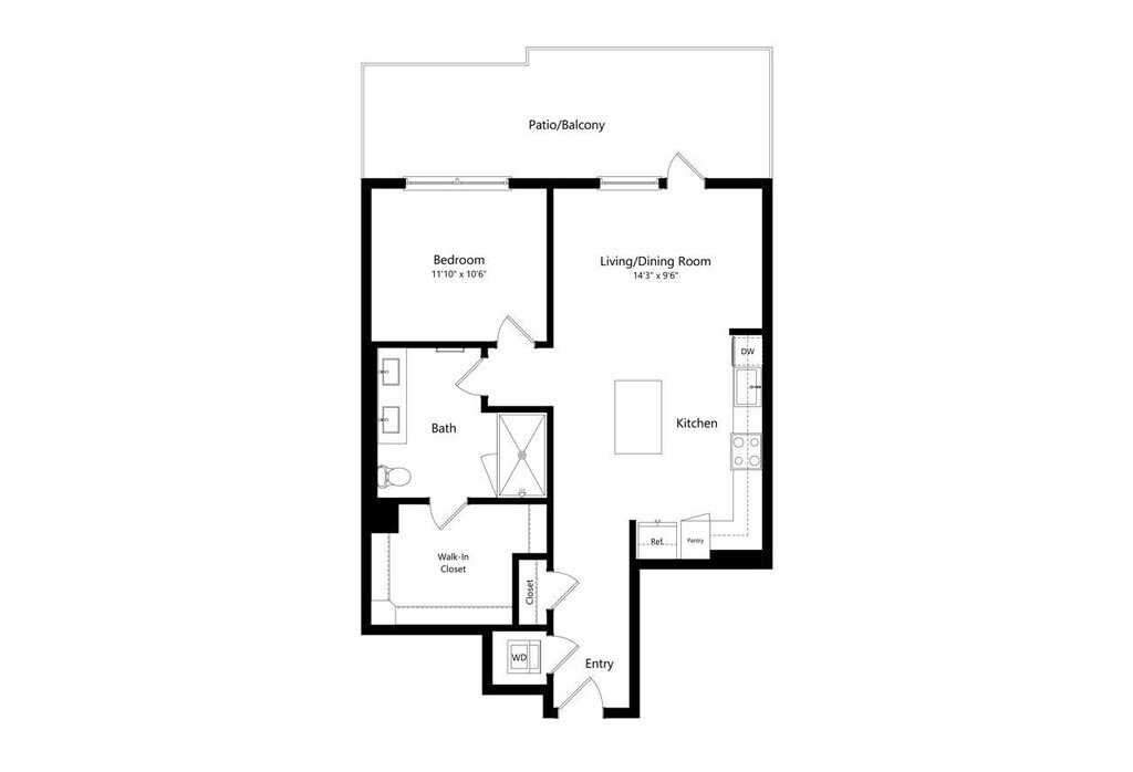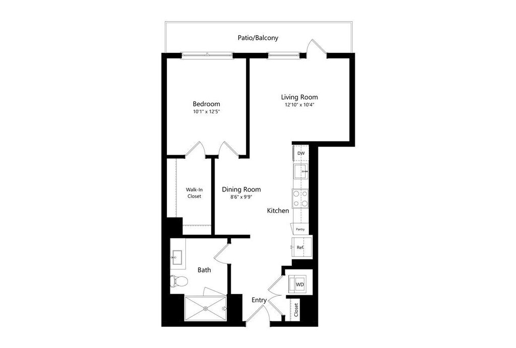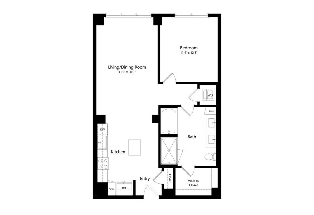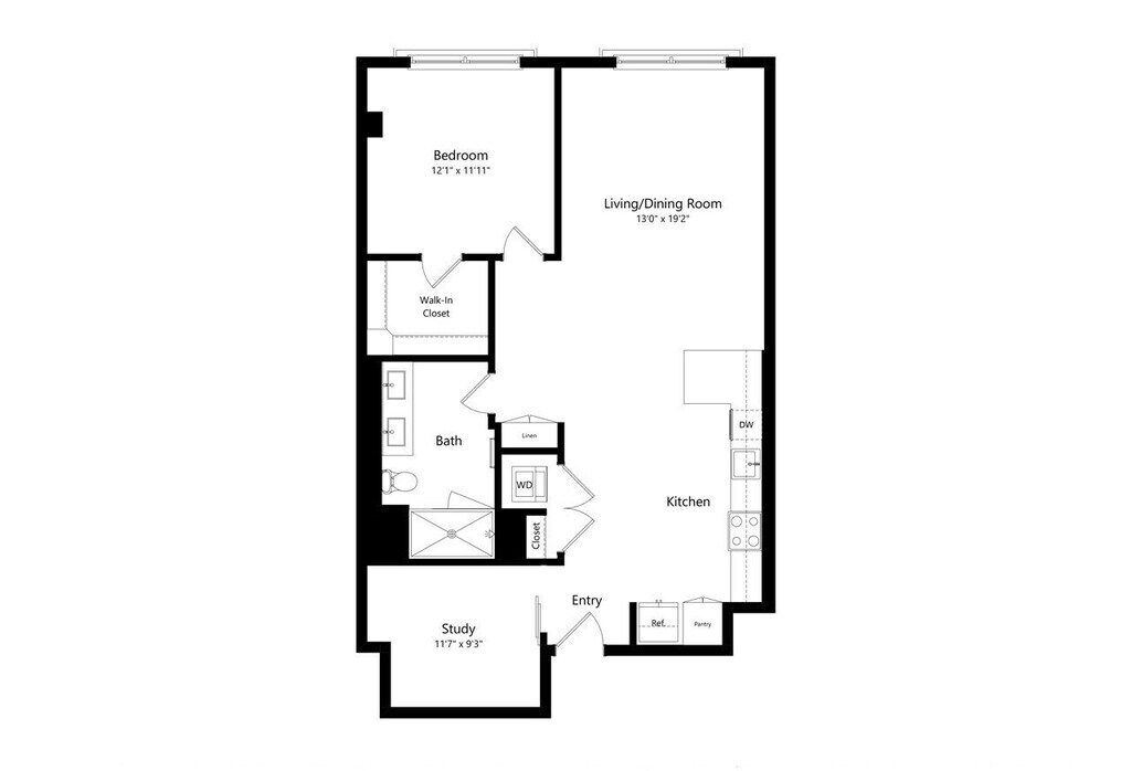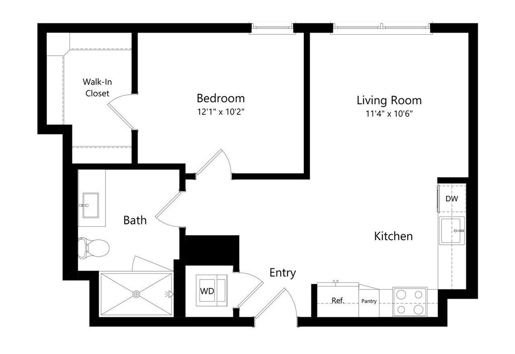 Estudio, 1 Baño, 614 pies²Galería del Modelo