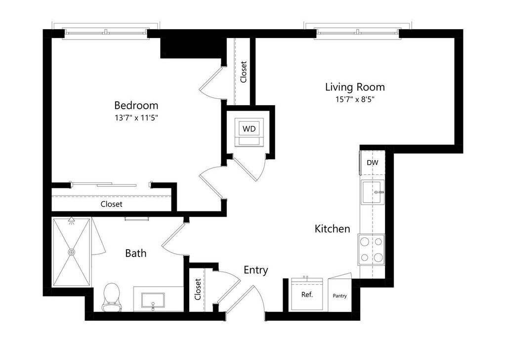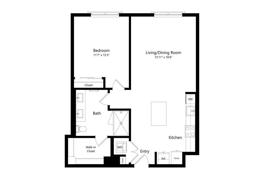 Estudio, 1 Baño, 604 pies²Galería del Modelo