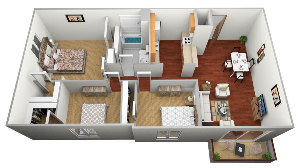 Modelo de apartamento: 3 Bed, 1 Bath$1,0803 Dormitorios, 2 Baños, 1140 sq ftNo Disponible3 Bed, 1 Bath - Plano 1