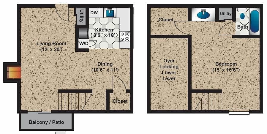 1 Dormitorio, 1 Baño, 750 pies²Disponible AhoraGalería del Modelo