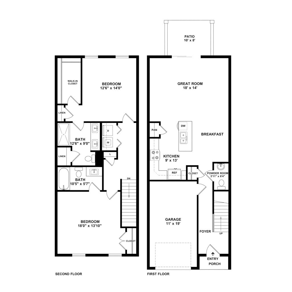 2 Dormitorios, 2.5 Baños, 1353 pies²Galería del Modelo