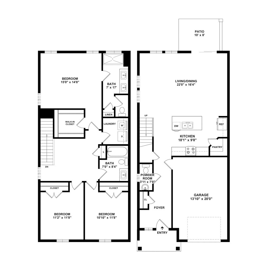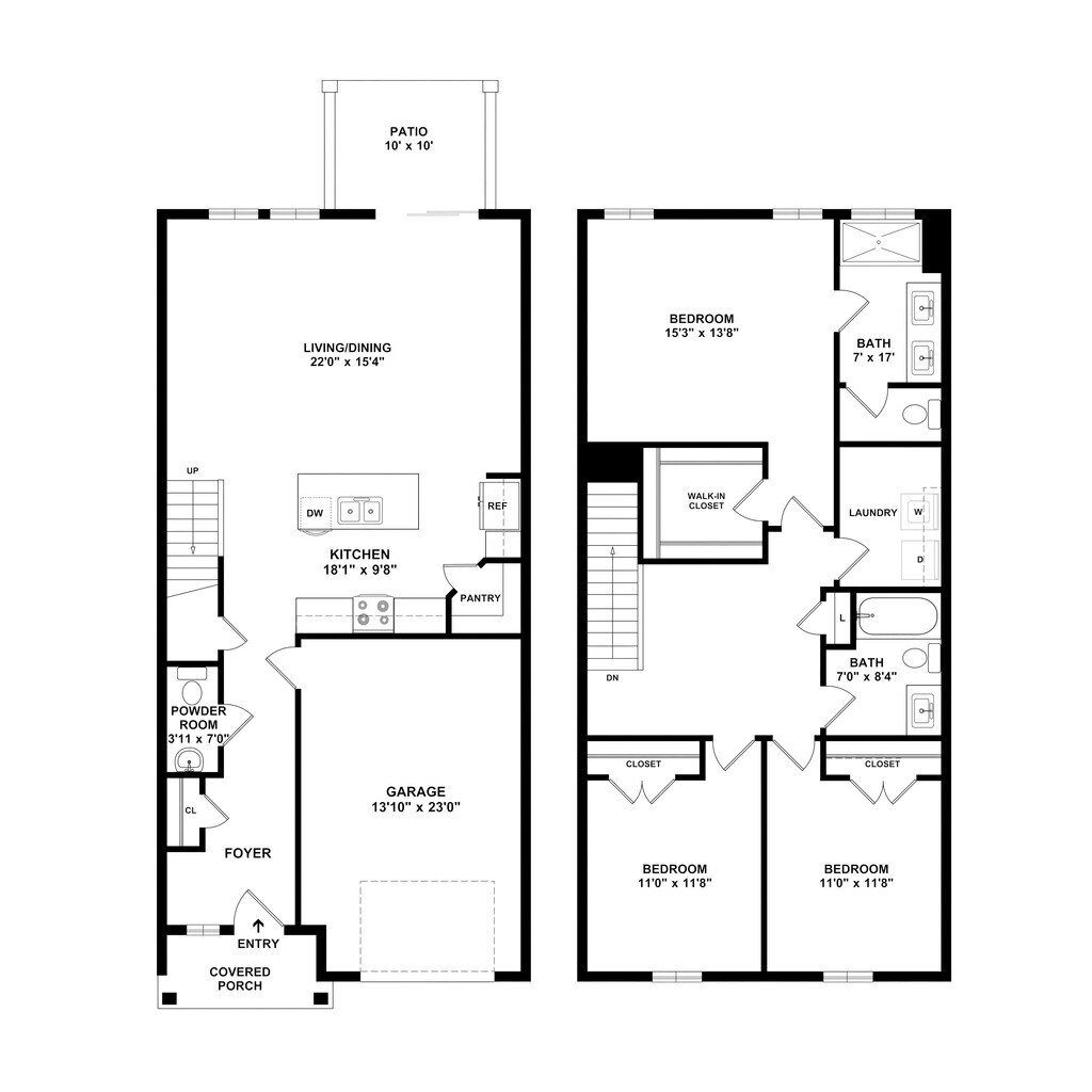3 Dormitorios, 2.5 Baños, 1961 pies²Disponible AhoraEl más grandeEsta opción tiene las unidades más grandes para este modeloGalería del Modelo