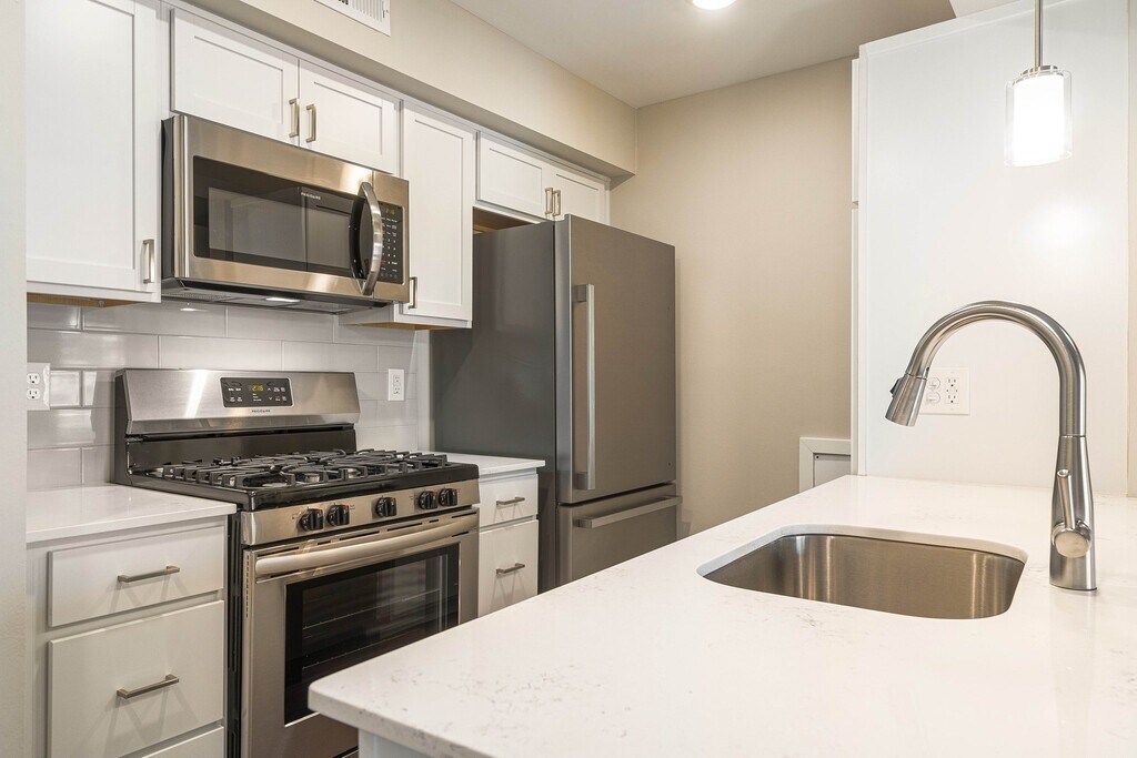 - Nuevos gabinetes blancos con tiradores de níquel cepillado
