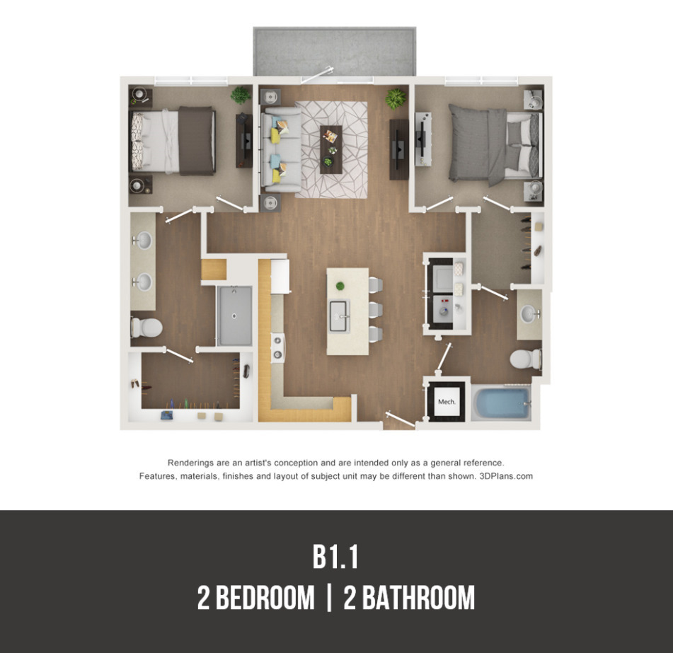 2 Dormitorios, 2 Baños, 1070 pies²Galería del Modelo