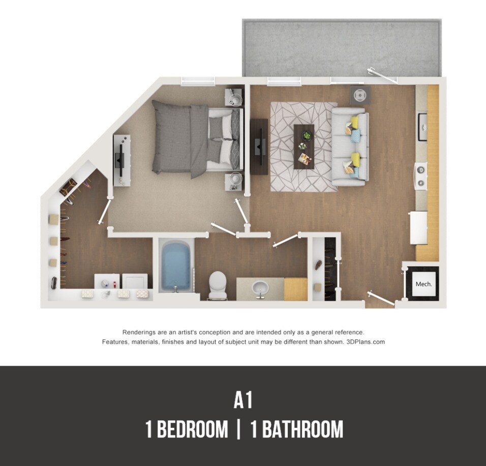 1 Dormitorio, 1 Baño, 652 pies²Galería del Modelo