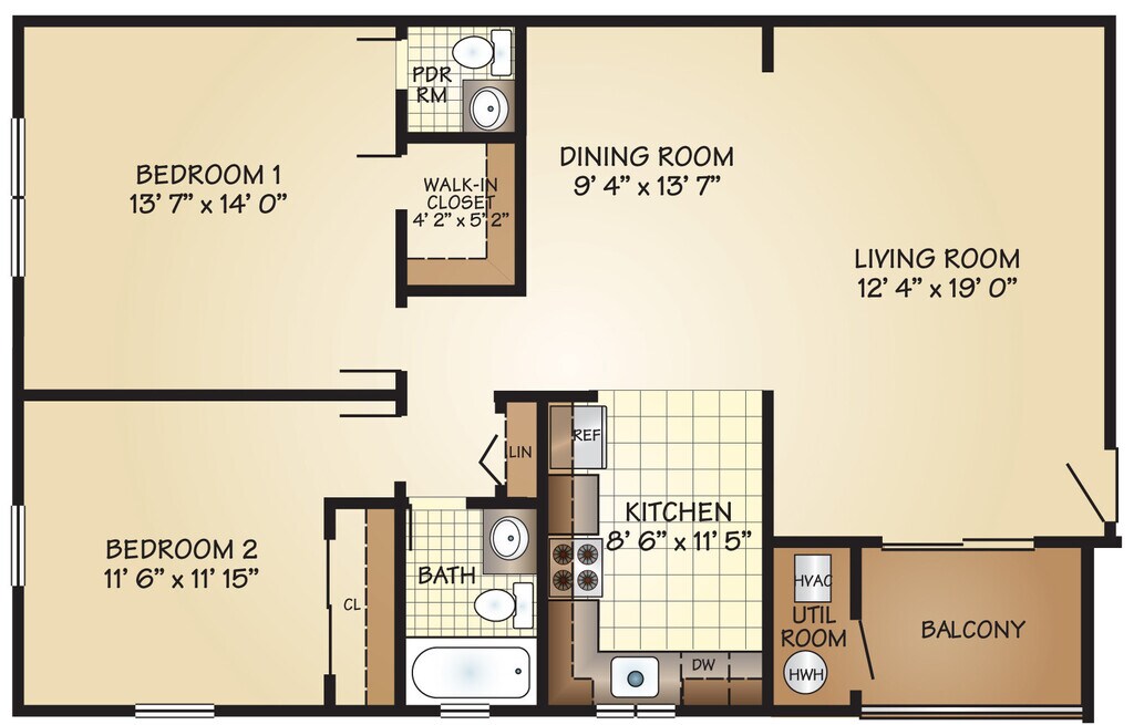 1 Dormitorio, 1 Baño, 750 pies²Disponible AhoraGalería del Modelo