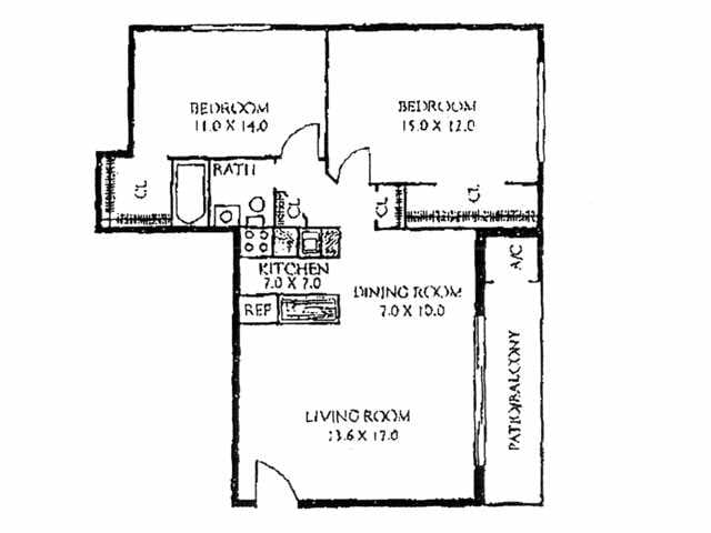Modelo de apartamento: Two BedroomDesde $1,5752 Dormitorios, 1 Baño, 809 sq ftDisponible Ahora![]()