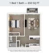 1 Dormitorio, 1 Baño, 650 pies²Disponible Oct 15Galería del Modelo