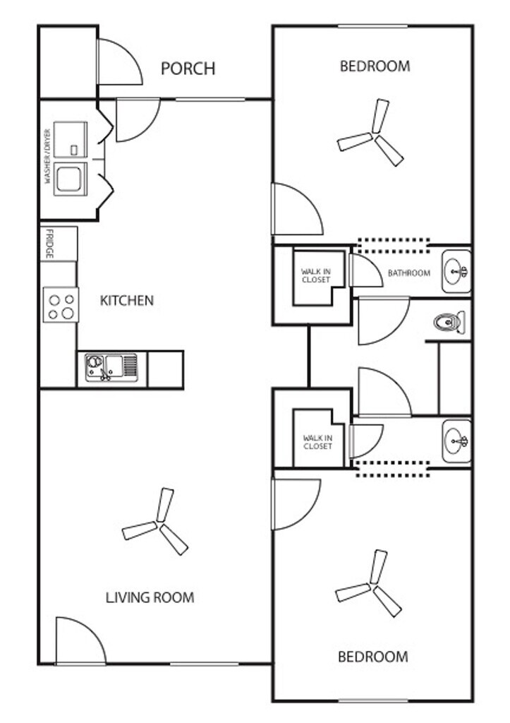 Modelo de apartamento: The HallDesde $1,0352 Dormitorios, 1 Baño, 900 sq ftDisponible June 6, 2026Los planos son representaciones artísticas. Todas las dimensiones son aproximadas. El producto y las especificaciones reales pueden variar en tamaño o detalle. No todas las características están disponibles en cada vivienda en alquiler. Por favor, consulta con un representante para obtener más detalles.