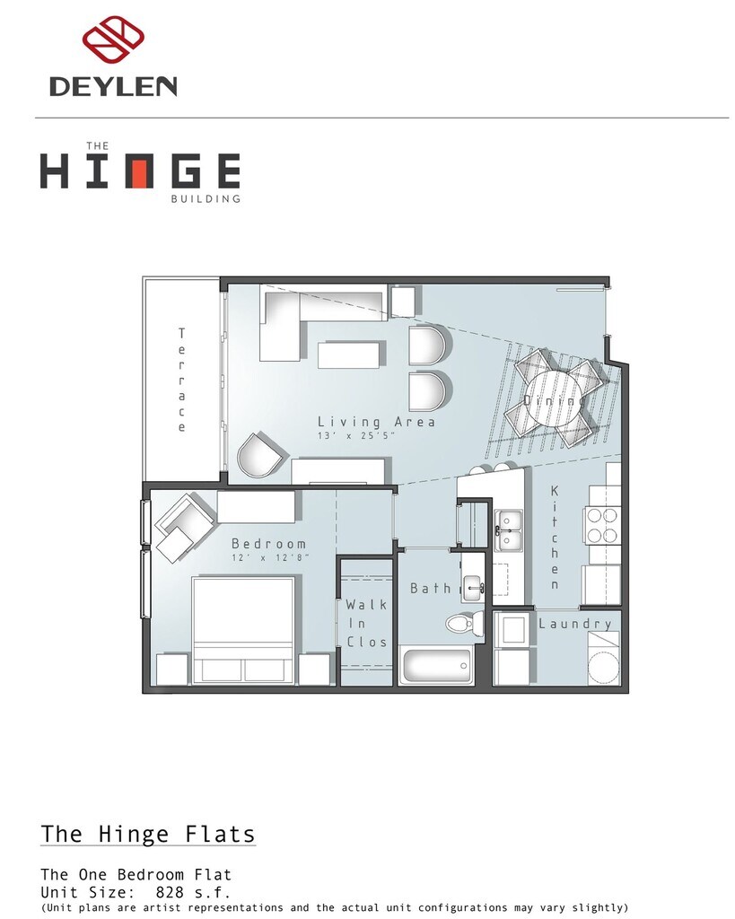 Hinge Apartments ofrece apartamentos de 1 Dormitorio desde $1,640 con 828 pies cuadrados. Aquí está el precio actual y la disponibilidad: