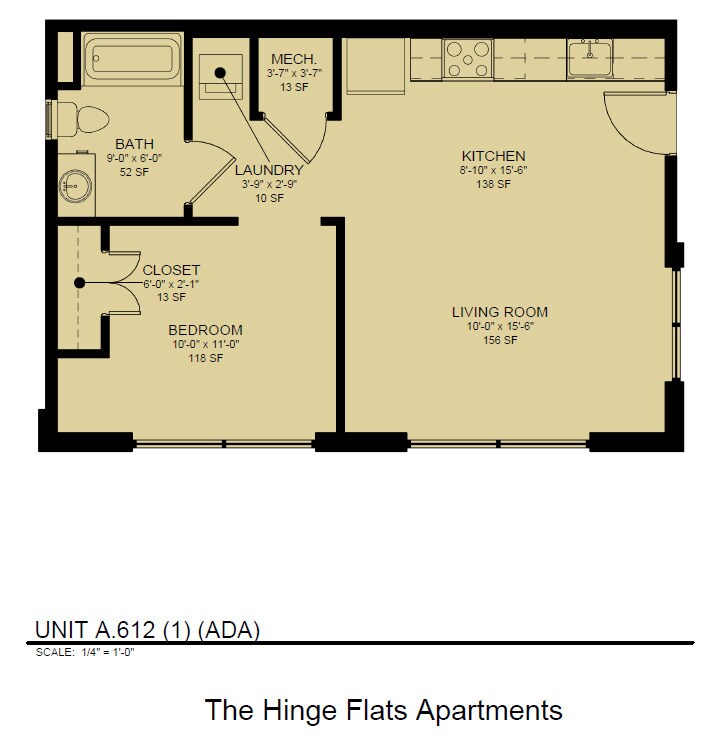 1 Dormitorio, 1 Baño, 604 pies²Galería del Modelo