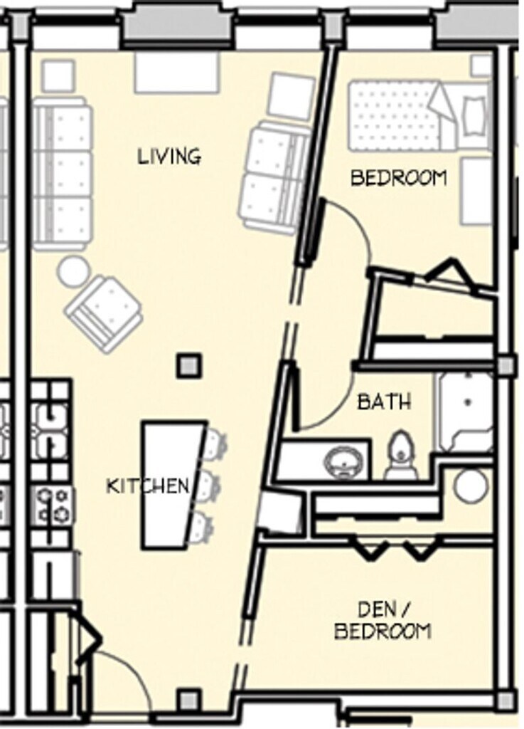 Modelo de apartamento: Floorplan 2$9101 Dormitorio, 1 Baño, 700 sq ftNo Disponible![]()