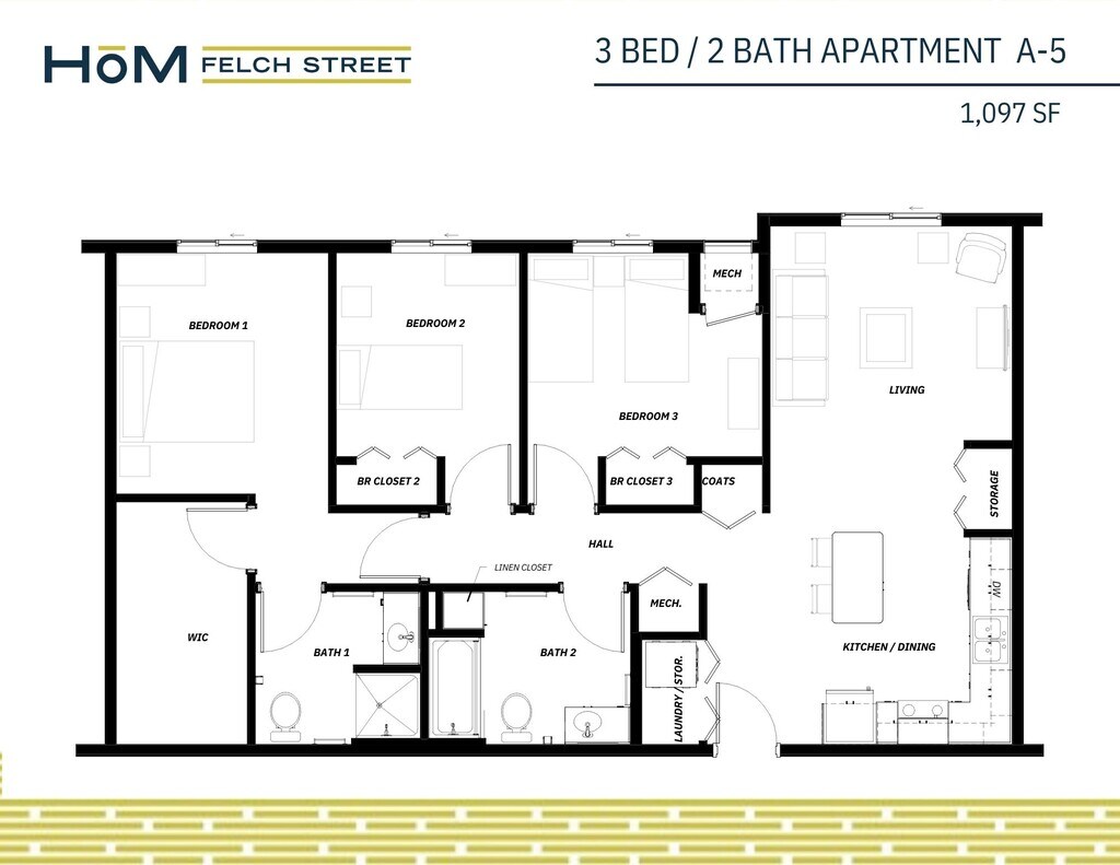 Modelo de apartamento: Three-Bedroom3 Dormitorios, 2 Baños, 1097 sq ftNo Disponible![]()