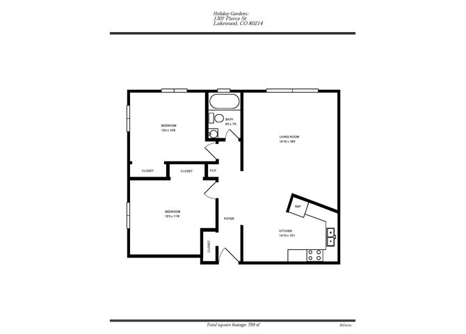 Modelo de apartamento: HOLIDAY GARDENS- TWO BEDROOM ONE BATH- F2 Dormitorios, 1 Baño, 700 sq ftNo DisponibleHOLIDAY GARDENS- TWO BEDROOM ONE BATH- F - Plano 1 Holiday Gardens - Two Bedroom, One Bathroom - B