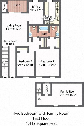 Two Bedroom - Plano 13 Unidad de apartamento: 0116LModelo de apartamento: Two Bedroom2 Dormitorios, 1.5 Baños, 1230 sq ftDisponible AhoraUnidad de apartamento: 1211FModelo de apartamento: Two Bedroom2 Dormitorios, 1.5 Baños, 1230 sq ftDisponible AhoraUnidad de apartamento: 1333FModelo de apartamento: Two Bedroom2 Dormitorios, 1.5 Baños, 1230 sq ftDisponible AhoraTwo Bedroom + Den