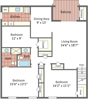 Modelo de apartamento: Three Bedroom3 Dormitorios, 2 Baños, 1480 sq ftDisponible November 20, 2025PlanosFotos![]()