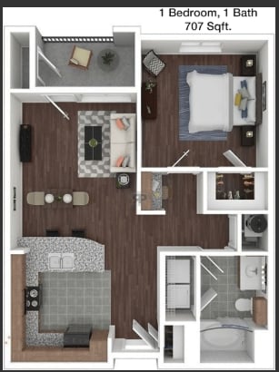 1 Dormitorio, 1 Baño, 707 pies²Disponible AhoraGalería del Modelo