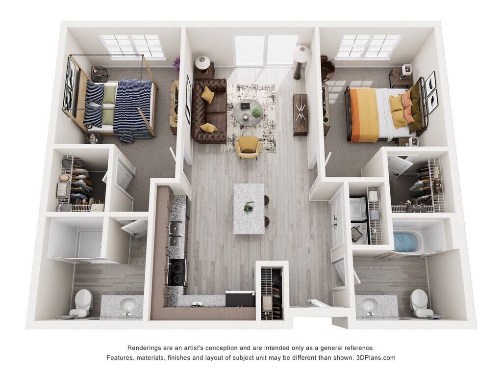2 Dormitorios, 2 Baños, 1080 pies²Disponible June 1, 2026Galería del Modelo