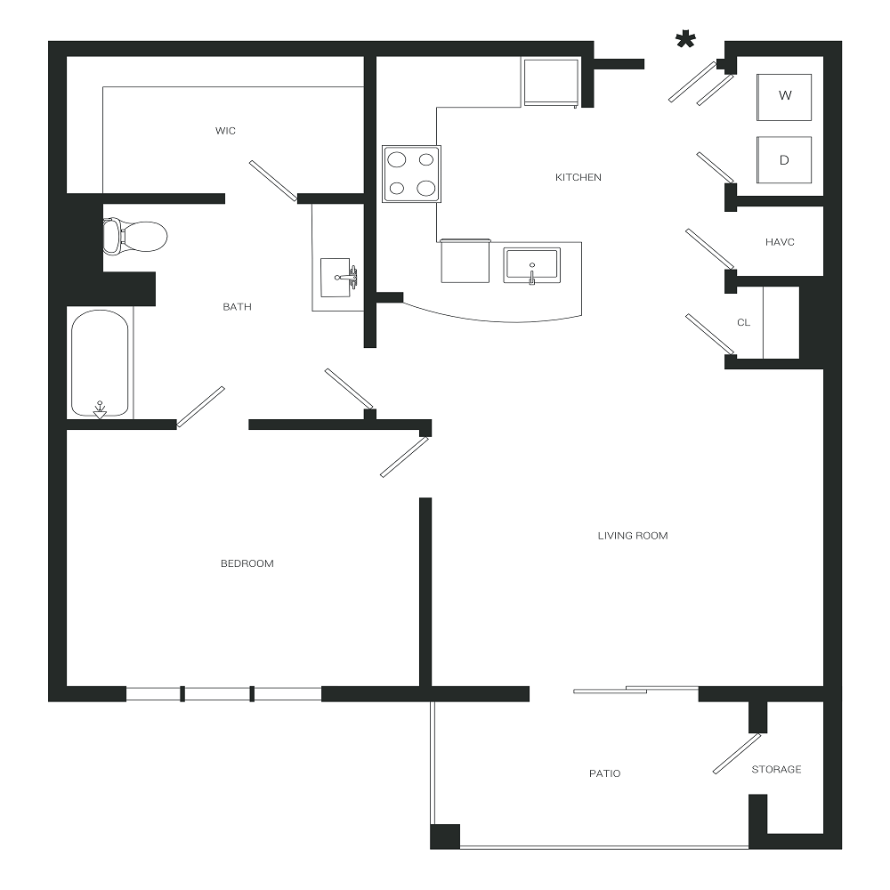 Lily - Plano 1 Los planos son representaciones artísticas. Todas las dimensiones son aproximadas. El producto y las especificaciones reales pueden variar en tamaño o detalle. No todas las características están disponibles en cada vivienda en alquiler. Por favor, consulta con un representante para obtener más detalles.