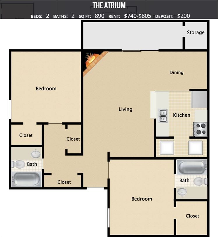 Modelo de apartamento: AdairDesde $8171 Dormitorio, 1 Baño, 510 sq ftDisponible Ahora![]()