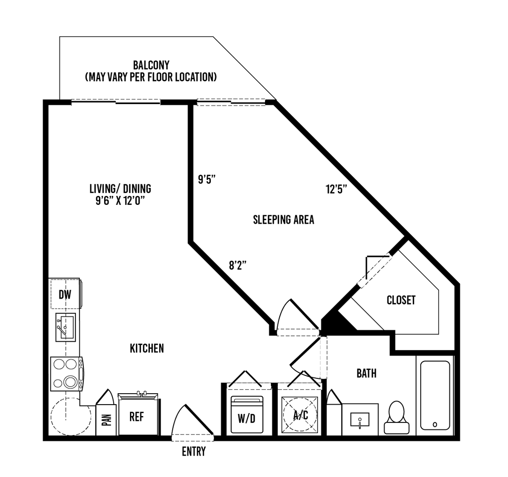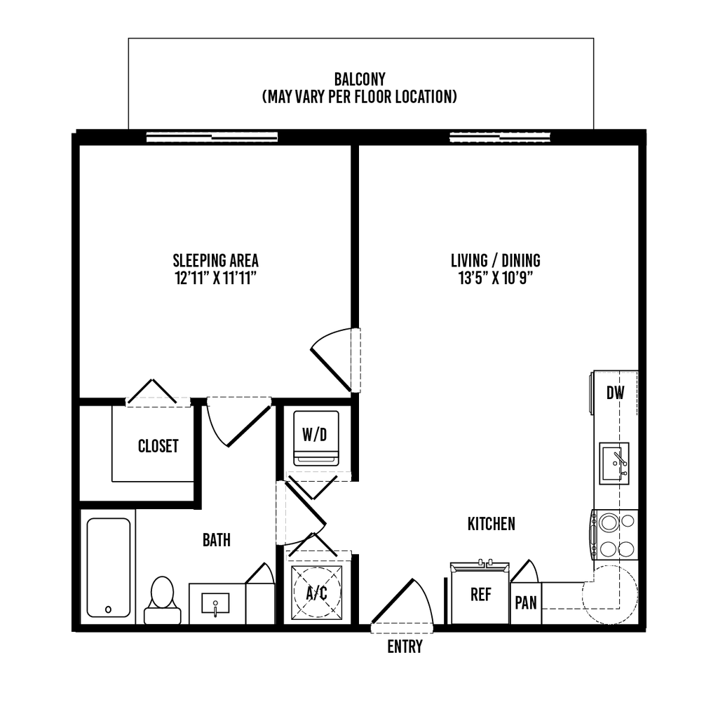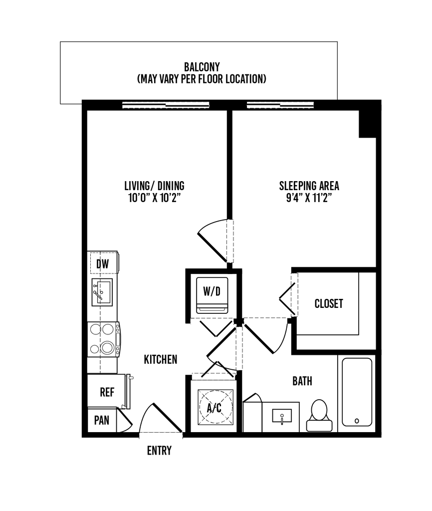 Modelo de apartamento: S2Desde $2,200Estudio, 1 Baño, 516 sq ftDisponible March 7, 2026![]()