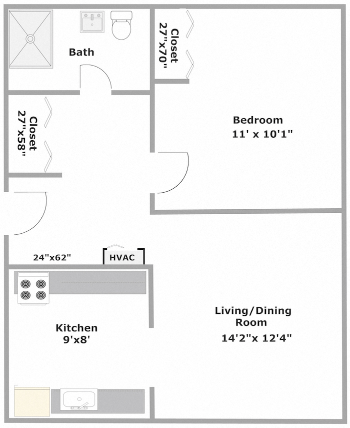 1 Dormitorio, 1 Baño, 525 pies²Galería del Modelo