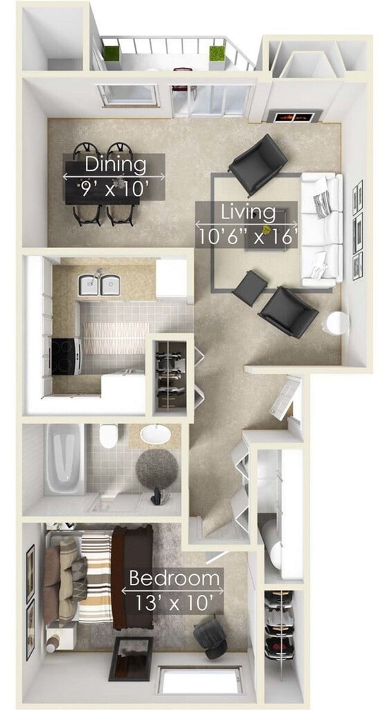 1 Dormitorio, 1 Baño, 691 pies²Disponible AhoraGalería del Modelo
