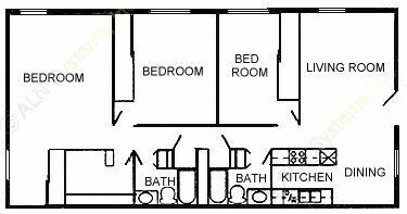 Modelo de apartamento: 3 Bed 2 Bath3 Dormitorios, 2 Baños, 1260 sq ftNo Disponible![]()