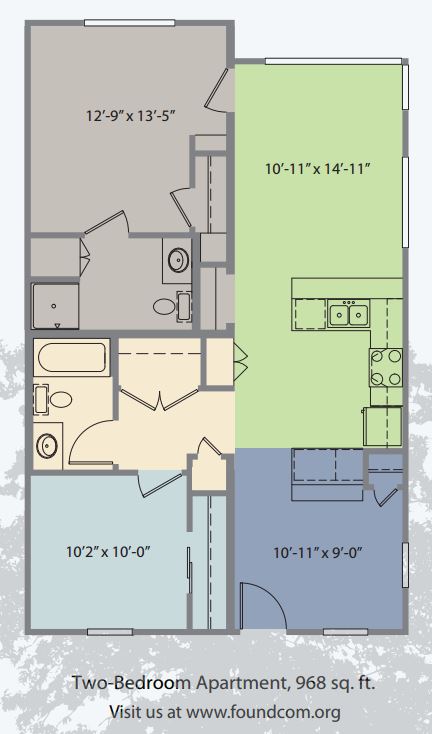 Modelo de apartamento: 2x2Desde $1,3492 Dormitorios, 2 Baños, 968 sq ftDisponible Ahora![]()