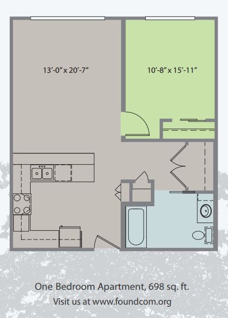 Modelo de apartamento: 1x1Desde $1,1201 Dormitorio, 1 Baño, 698 sq ftDisponible Ahora![]()