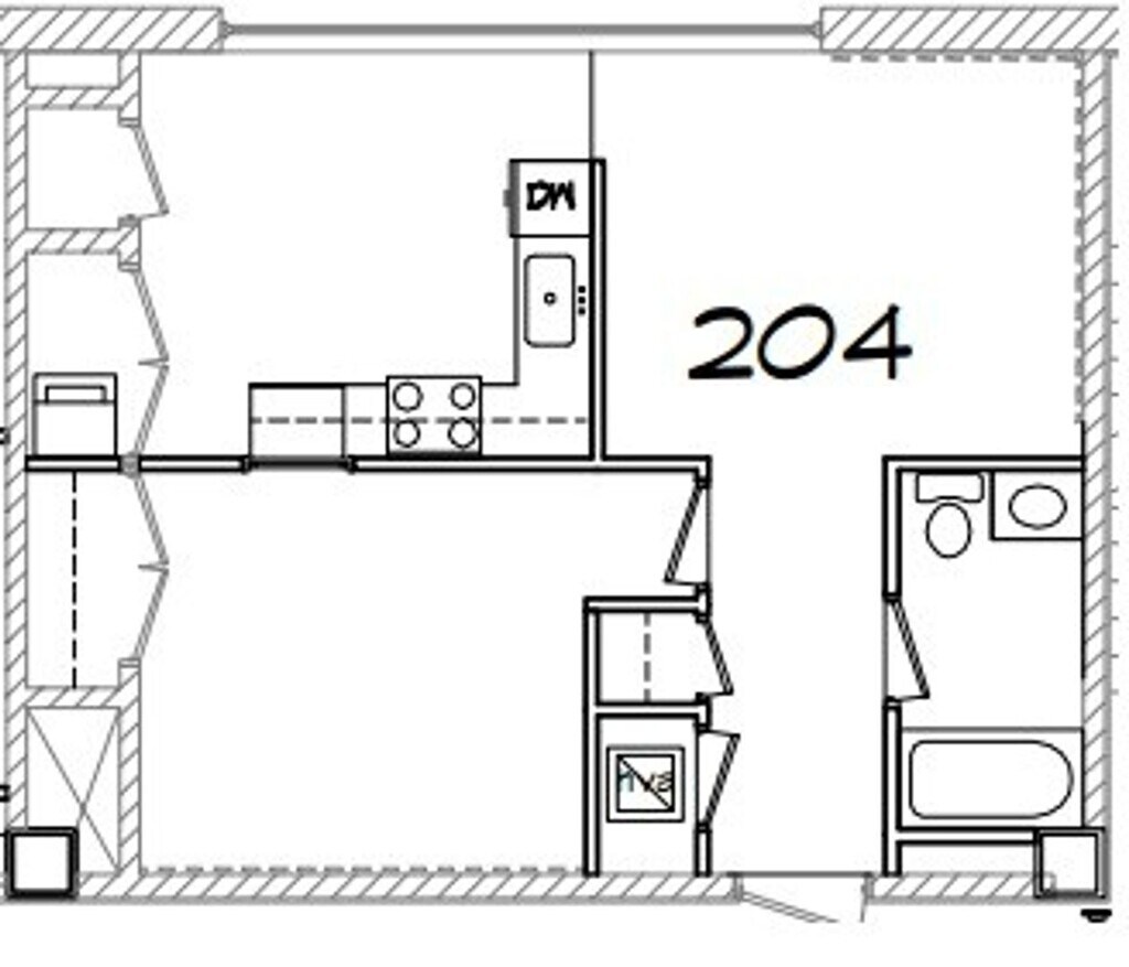 Unidad de apartamento: Apt 204Modelo de apartamento: 1BR/1.0BA$1,2251 Dormitorio, 1 Baño, 641 sq ftDisponible Ahora![]()