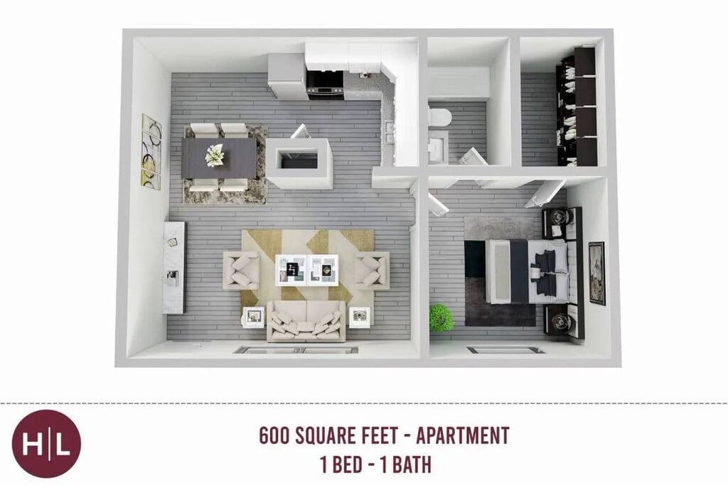 1 Dormitorio, 1 Baño, 600 pies²Disponible AhoraGalería del Modelo