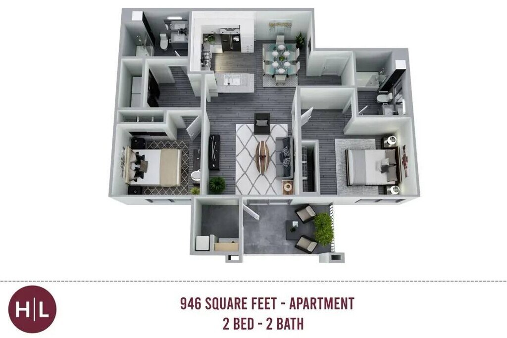 Modelo de apartamento: 2 bedroom 2 bathDesde $2,6252 Dormitorios, 2 Baños, 946-1061 sq ftDisponible Ahora![]()