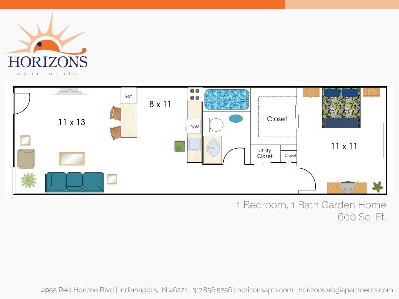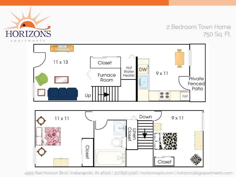 Horizons Apartments se encuentran en 4955 Red Horizon Blvd cerca de la zona Mars Hill en Indianapolis, IN