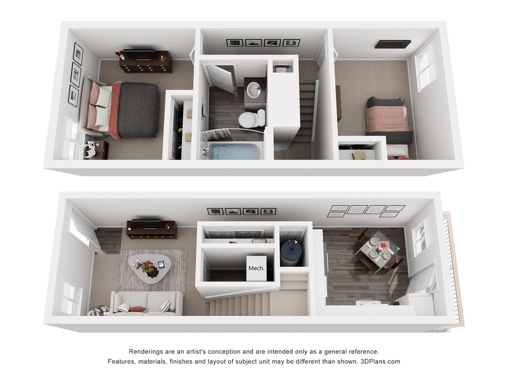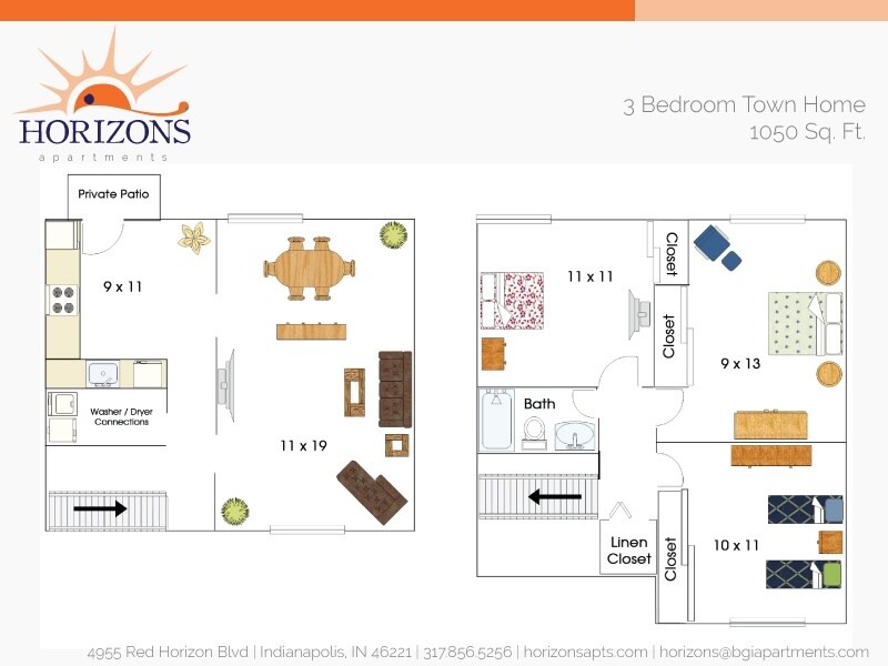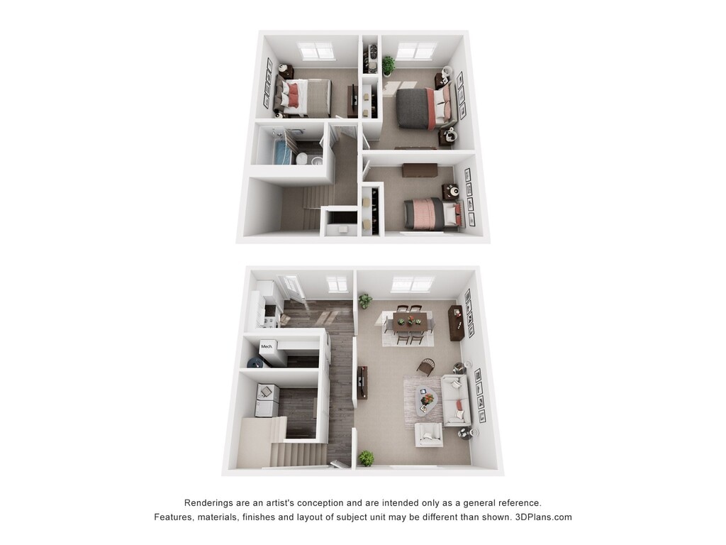 Modelo de apartamento: The EndeavorDesde $1,2753 Dormitorios, 1 Baño, 1050 sq ftDisponible Ahora![]()