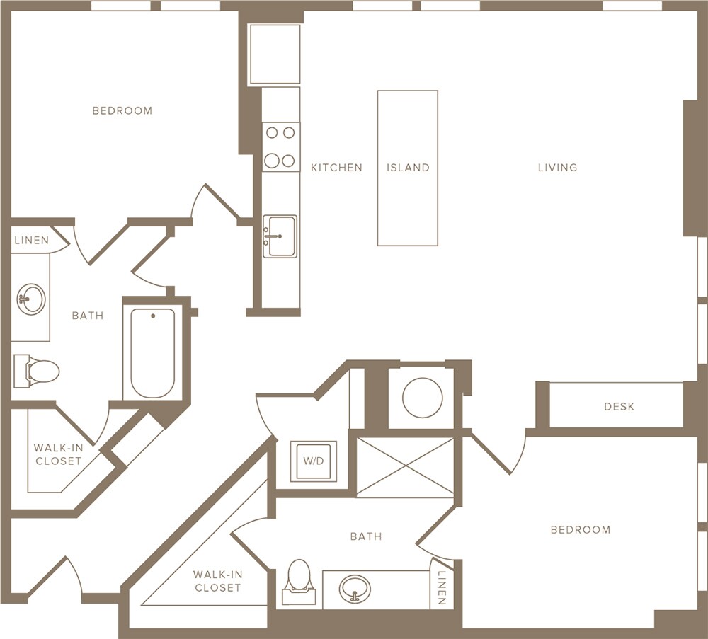 Modelo de apartamento: A10Desde $1,9411 Dormitorio, 1 Baño, 776 sq ftDisponible Ahora![]()