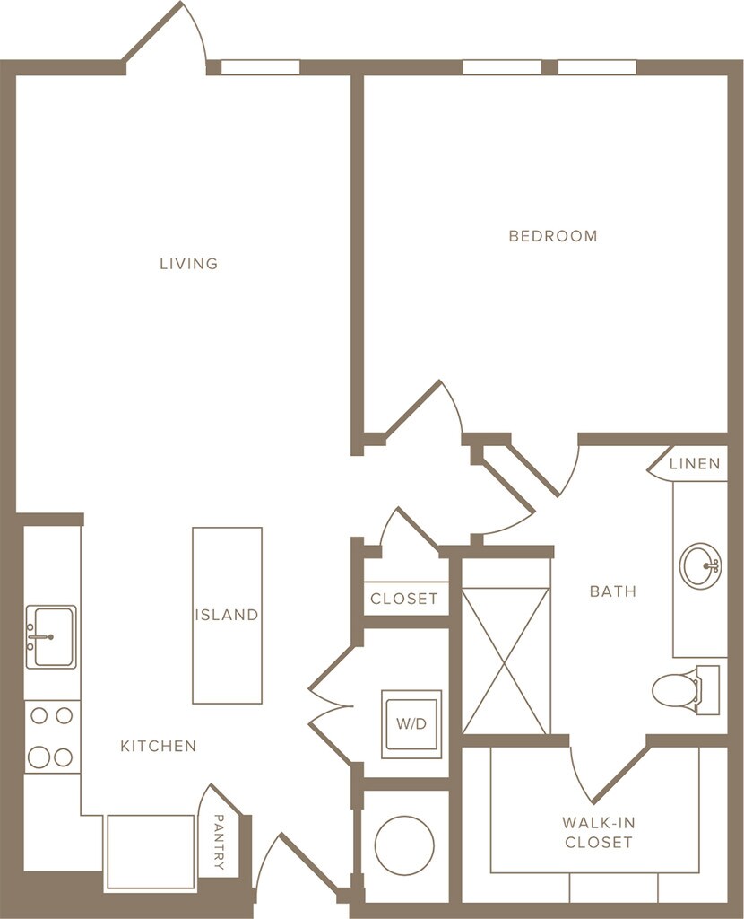 Modelo de apartamento: A1Desde $1,6121 Dormitorio, 1 Baño, 566 sq ftDisponible Ahora![]()