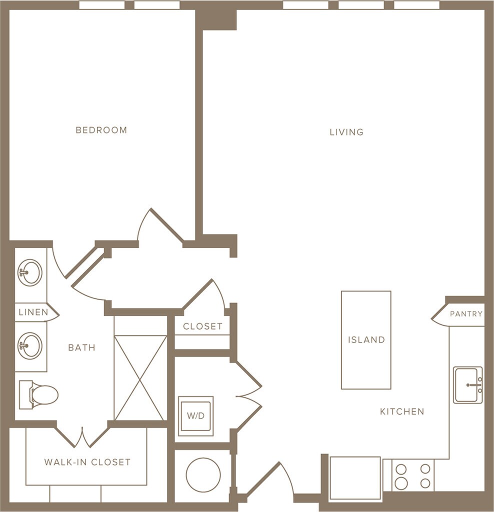 A1 - Plano 1 Unidad de apartamento: 0120Modelo de apartamento: A1$1,6121 Dormitorio, 1 Baño, 566 sq ftDisponible AhoraPlano: A10