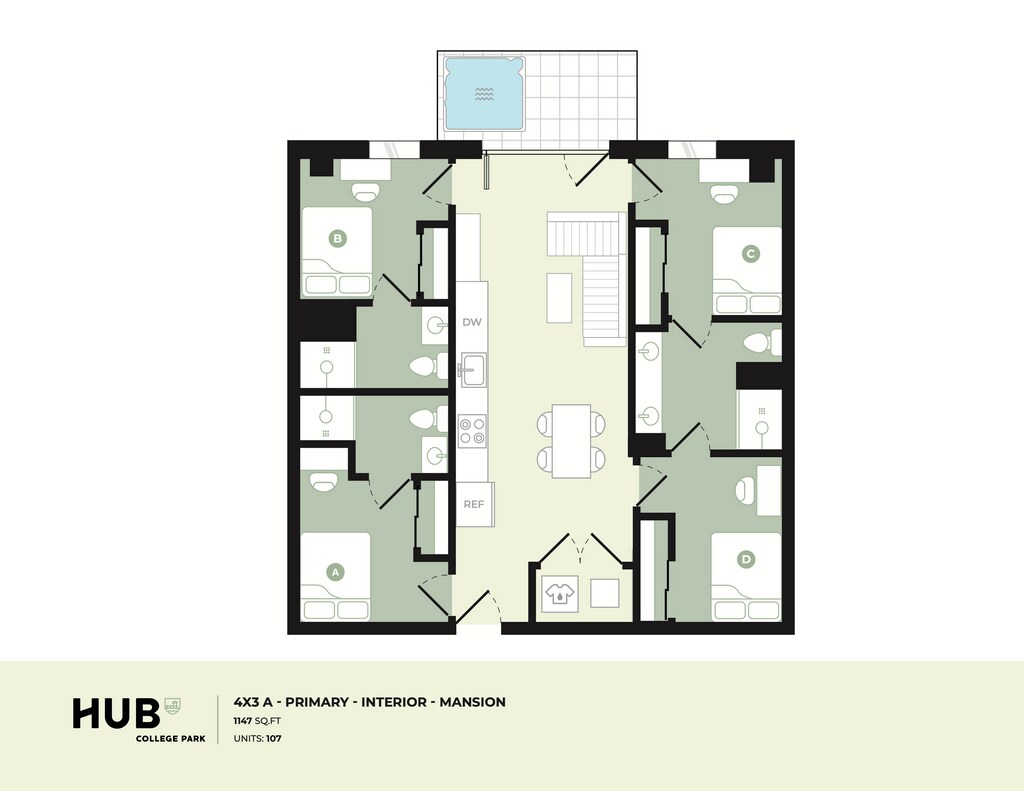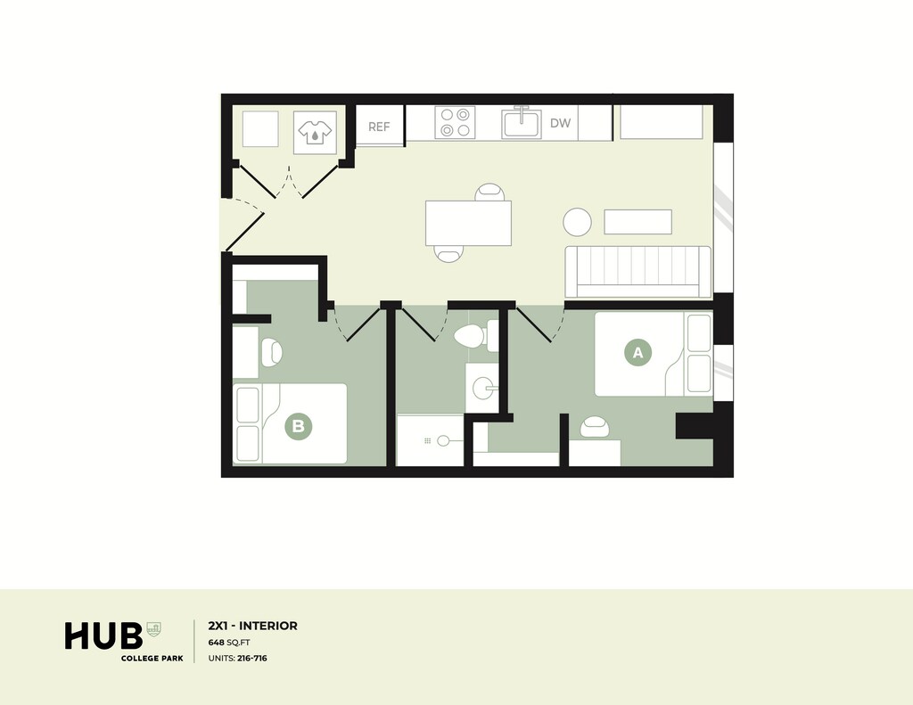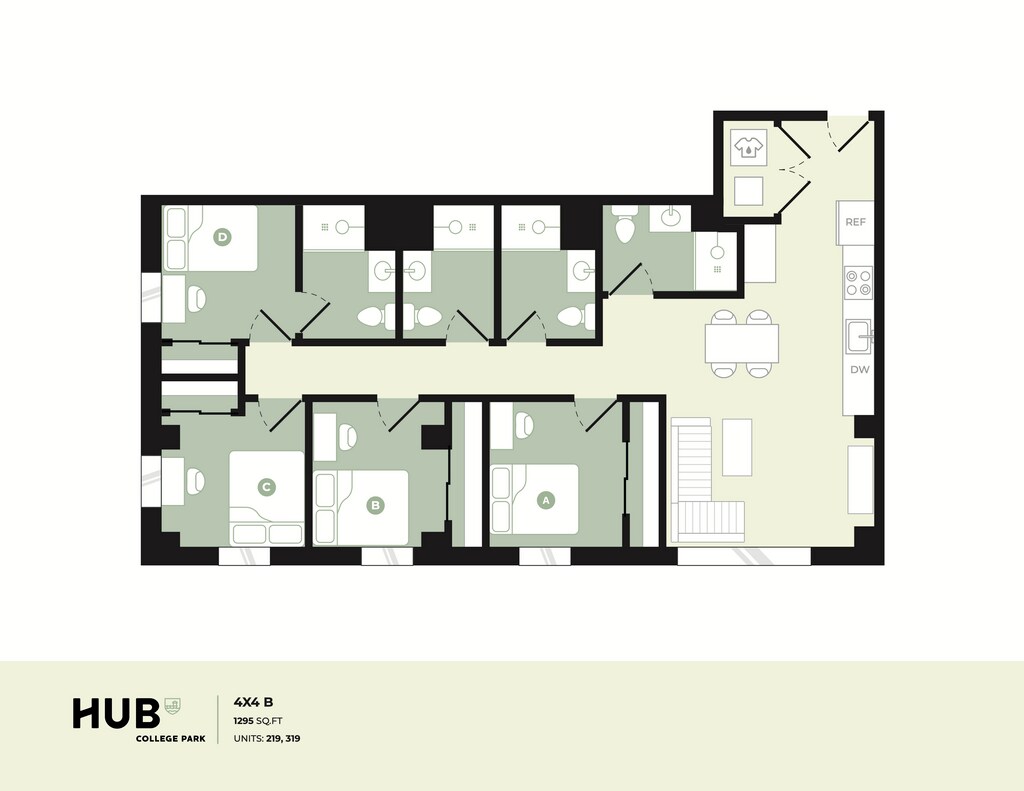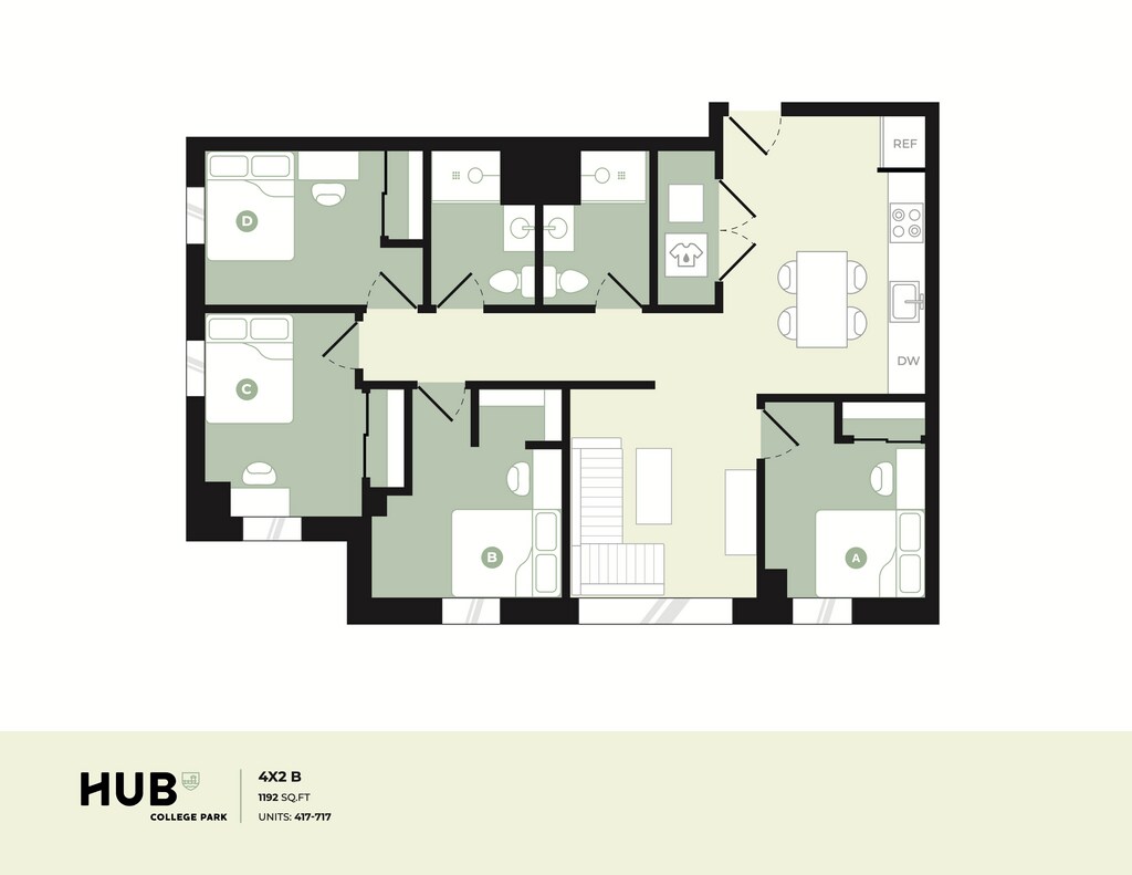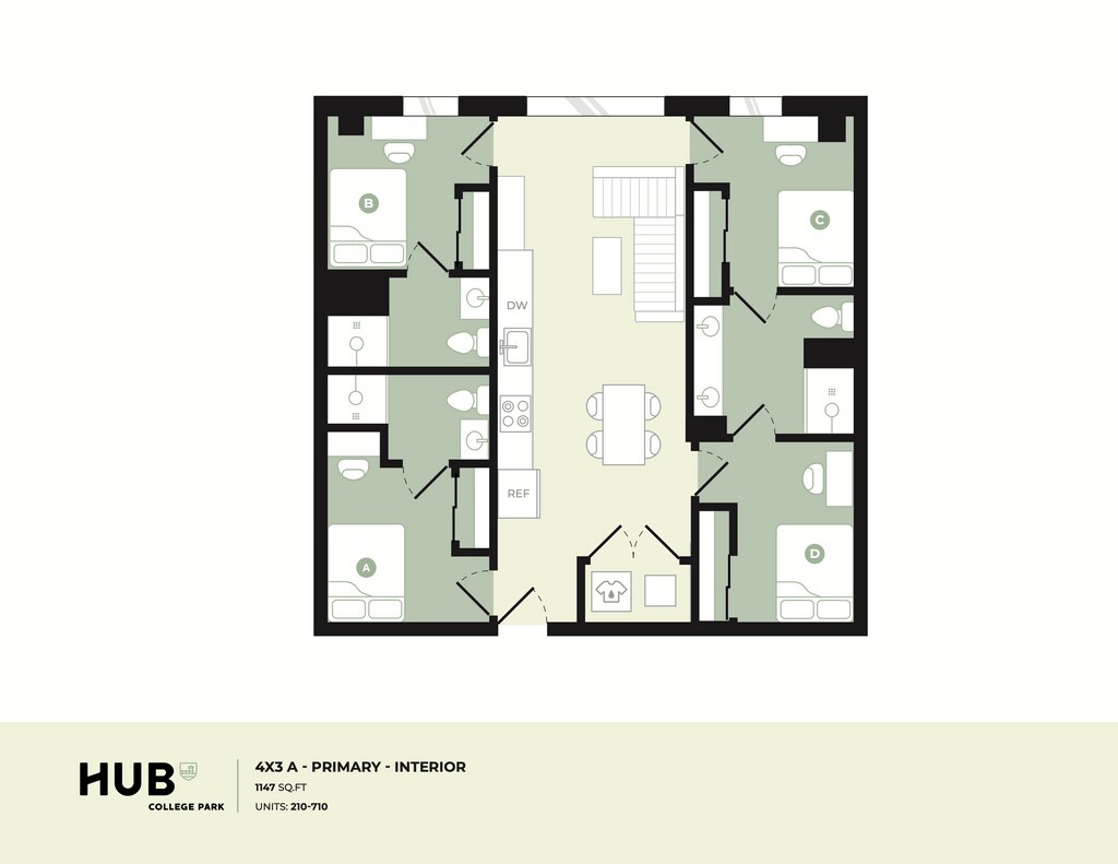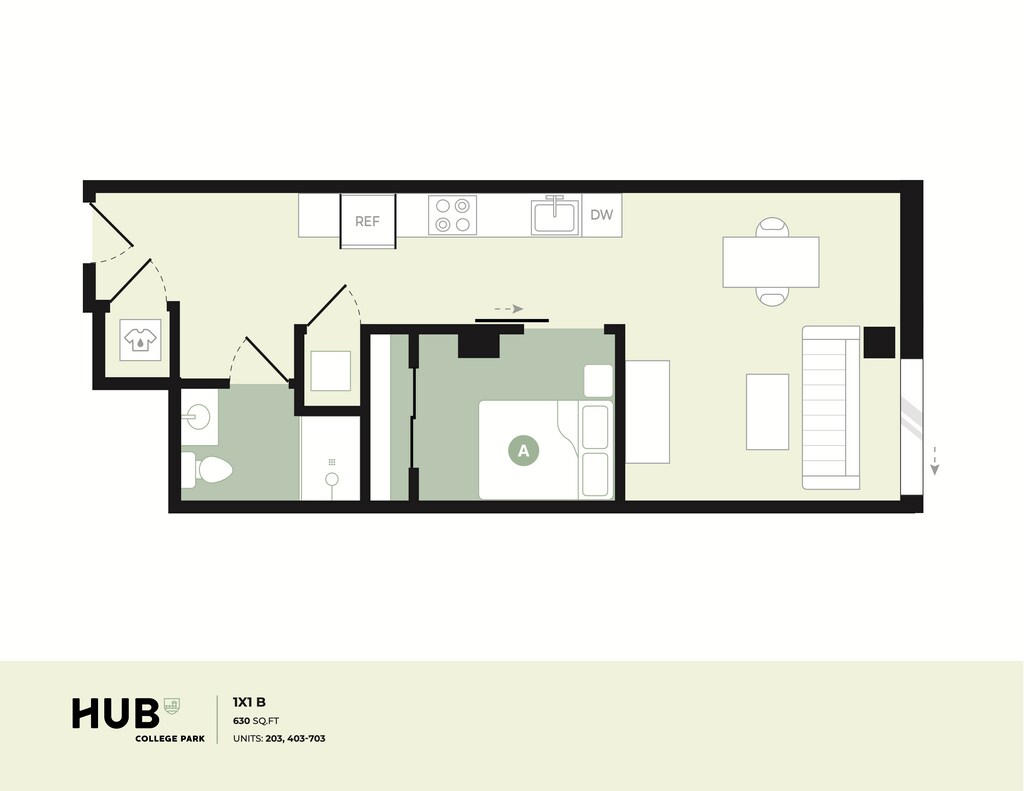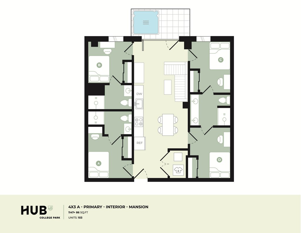 Hub College Park ofrece apartamentos de Estudio a 5 Dormitorios desde $1,195 con 369–1,982 pies cuadrados. Aquí está el precio actual y la disponibilidad: