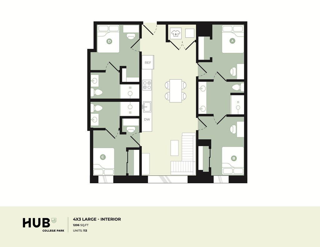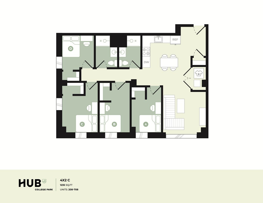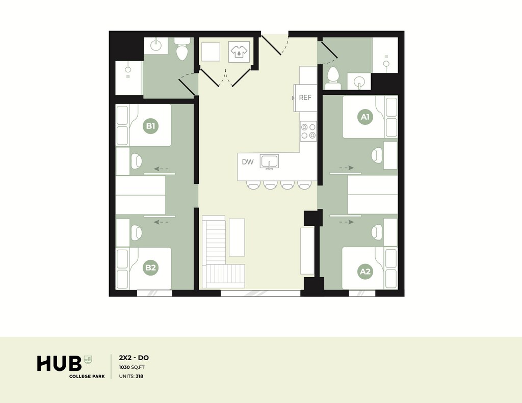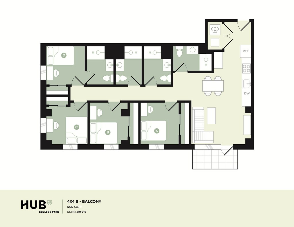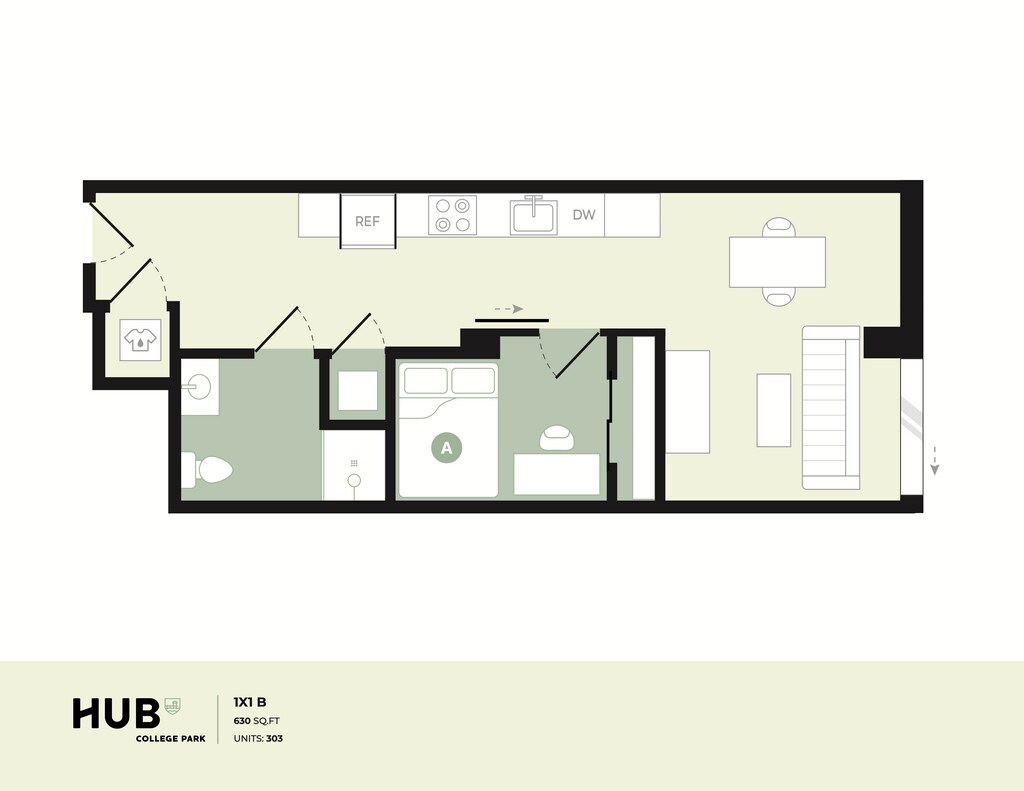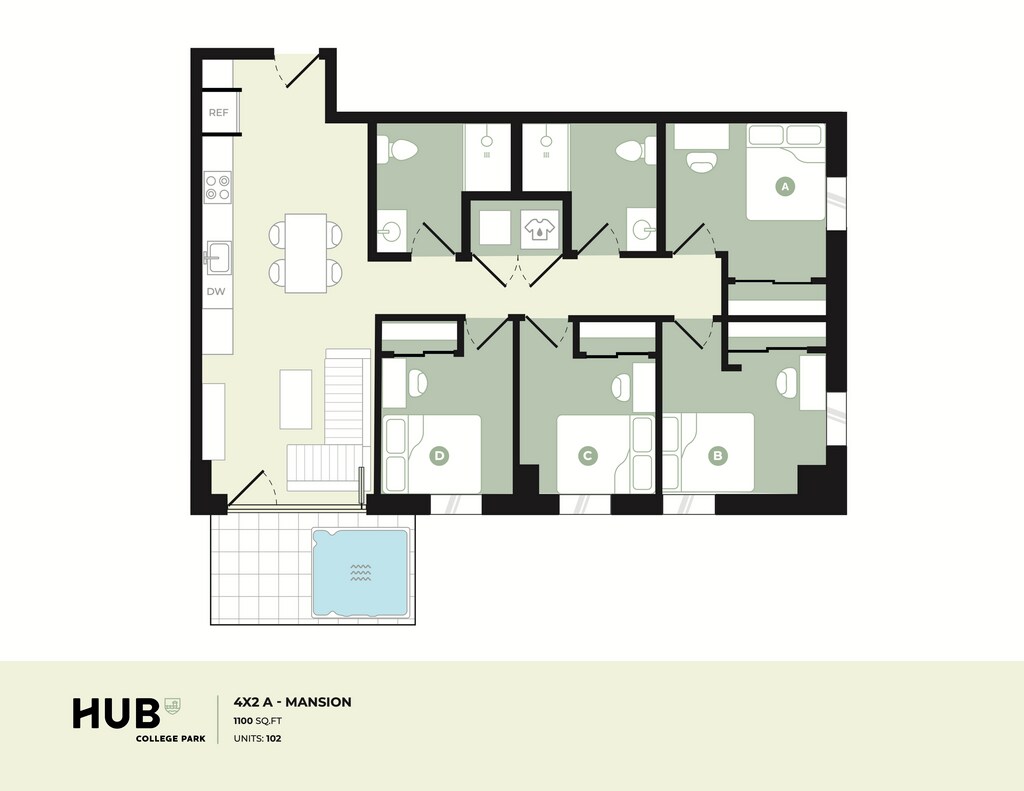 Hub College Park ofrece apartamentos de Estudio a 5 Dormitorios desde $1,195 con 369–1,982 pies cuadrados. Aquí está el precio actual y la disponibilidad: