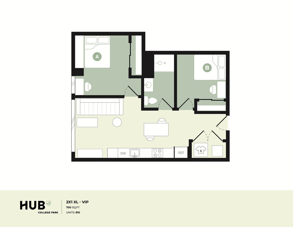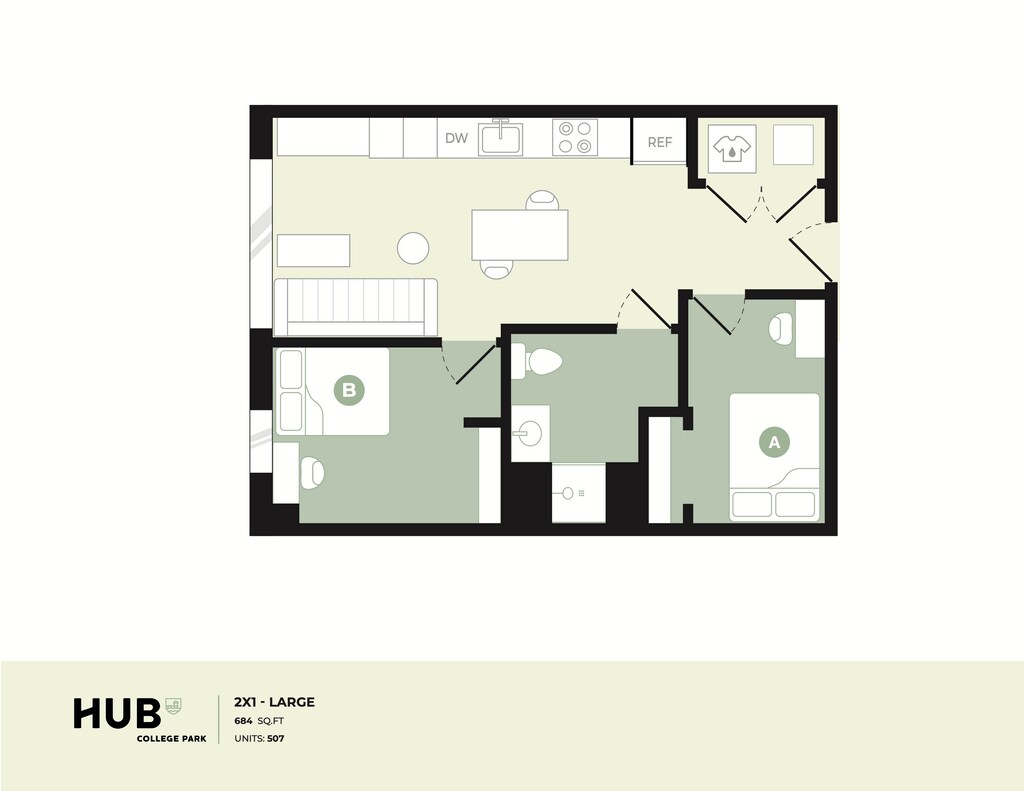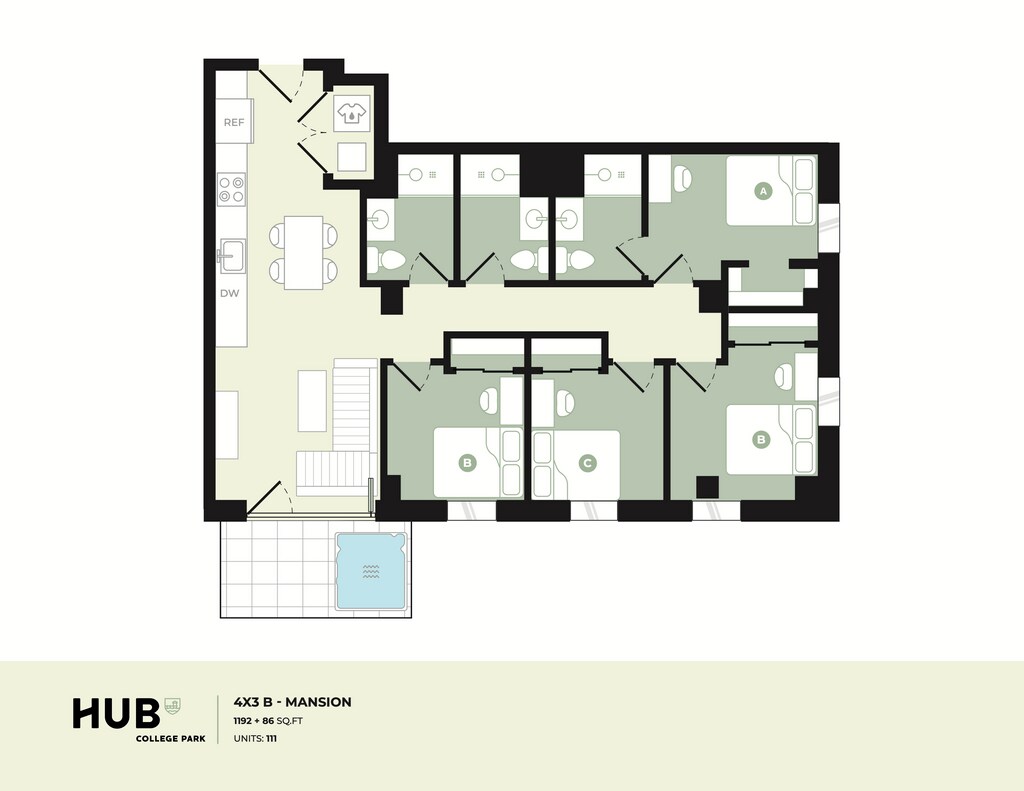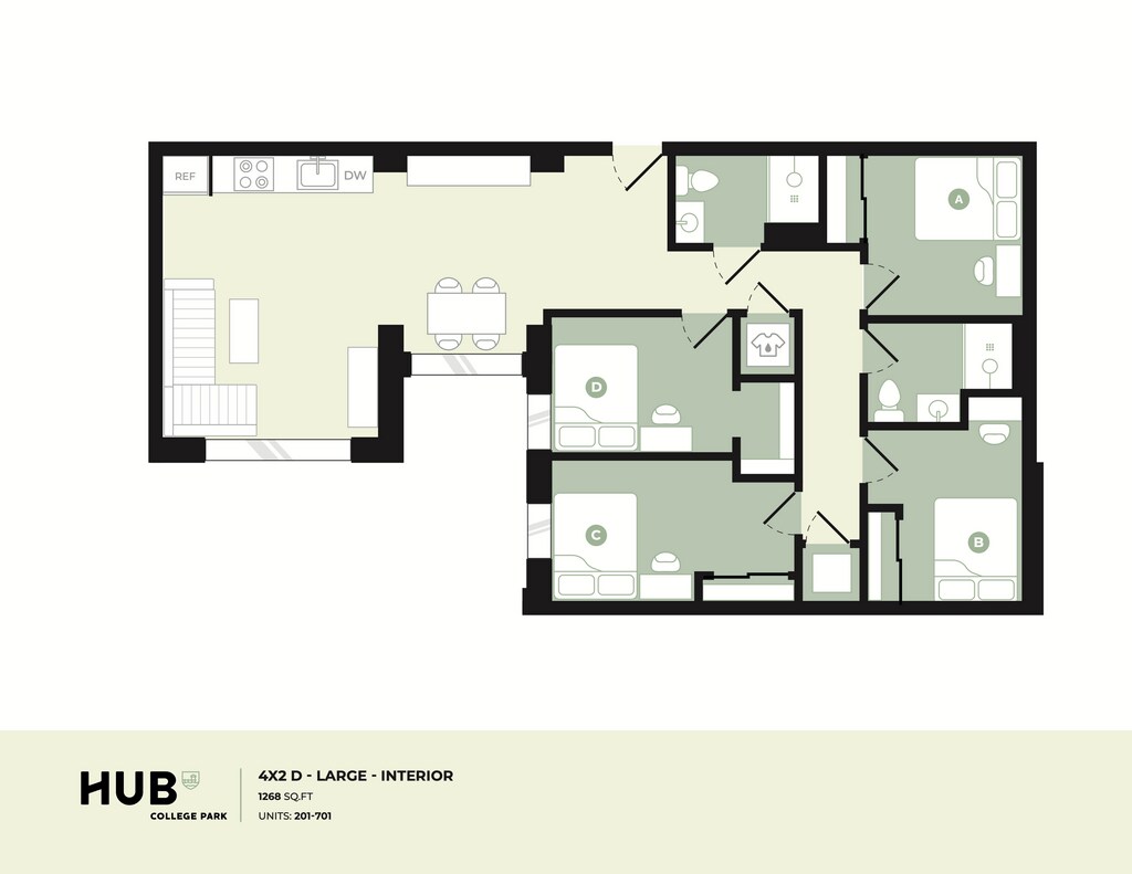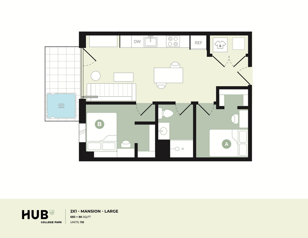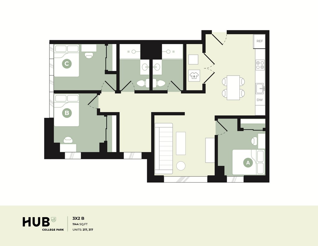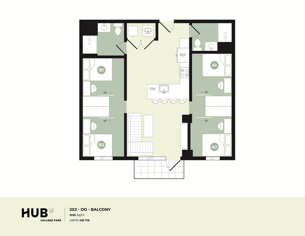 Hub College Park ofrece apartamentos de Estudio a 5 Dormitorios desde $1,195 con 369–1,982 pies cuadrados. Aquí está el precio actual y la disponibilidad: