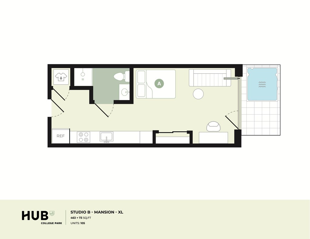 Studio A - Plano 1 Unidad de apartamento: Mansion, Single-PrivateModelo de apartamento: Studio A$2,225Estudio, 1 Baño, 400 sq ftDisponible August 24, 2026Studio B